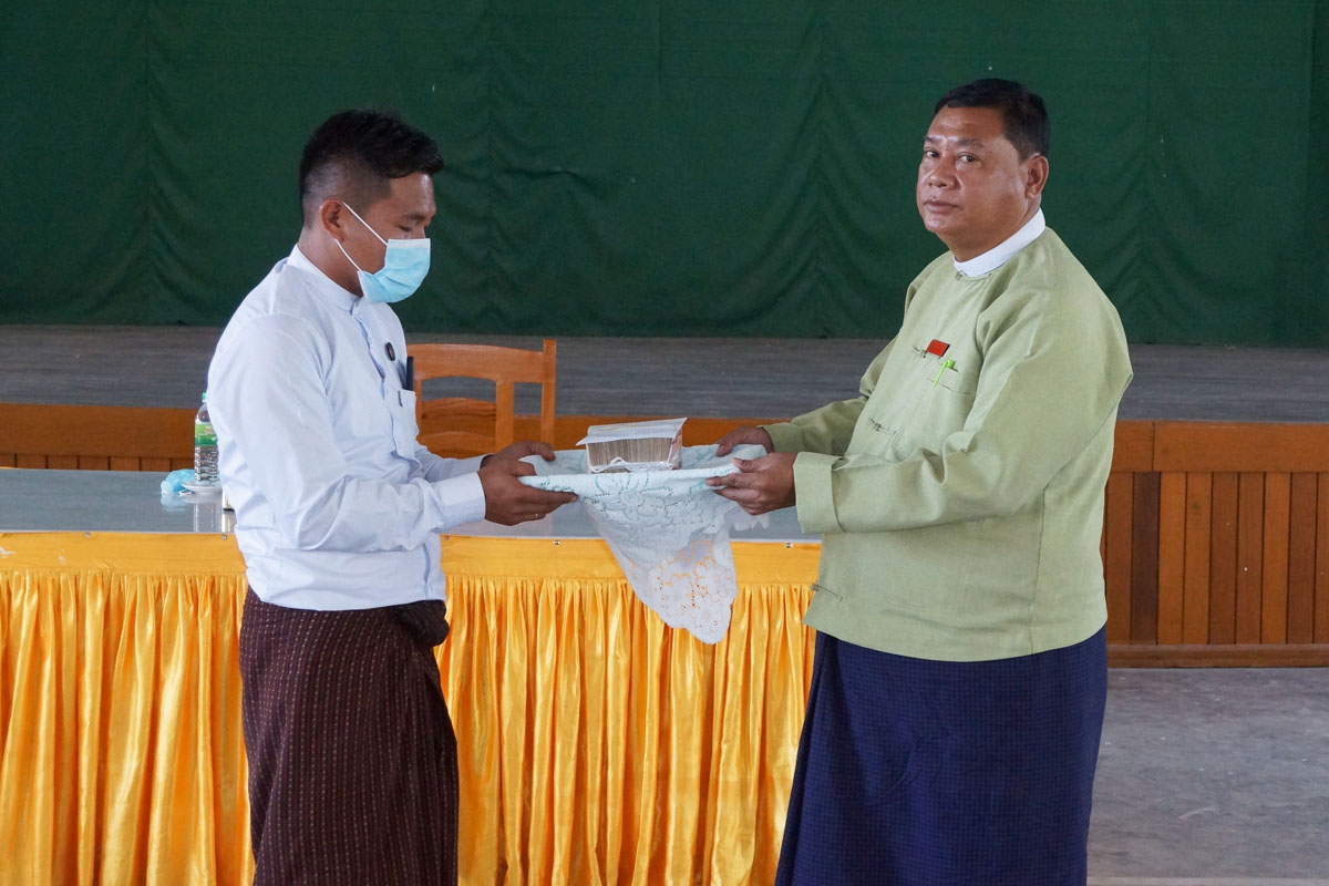 ထို့နောက် မြို့နယ်အုပ်ချုပ်ရေးမှူးနှင့် တာဝန်ရှိသူတို့က မြို့နယ်အတွင်းရှိ ပုံမှန်ဝင်ငွေမရှိသော အခြေခံလူတန်းစားအိမ်ထောင်စုများ၏ ထပ်တိုး တင်ပြထားသည့်အိမ်ထောင်စု ၃၅၁၁ စုအတွက် တစ်အိမ်ထောင်စုလျှင် ထောက်ပံ့ငွေကျပ် ၂၀၀၀၀ နှုန်းဖြင့် စုစုပေါင်းထောက်ပံ့ငွေကျပ် ၇၀၂၂၀၀၀၀ ကို သက်ဆိုင်ရာ ရပ်ကွက် ကျေးရွာအုပ်စု အုပ်ချုပ်ရေးမှူးများထံ ပေးအပ်ခဲ့သည်။