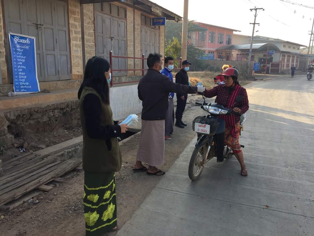 ထိုသို့ဆောင်ရွက်ရာတွင် ဈေးဝယ်သူများနှင့် လမ်းသွားလမ်းလာ ဖြတ်သန်းသွားလာနေကြသည့် ပြည်သူများအတွက် ကိုဗစ်-၁၉ ရောဂါ ကူးစက်ပြန့်ပွားမှုမရှိစေရေး လူတိုင်းပါးစပ်နှင့်နှာခေါင်းစည်း (Mask)များ စနစ်တကျ တပ်ဆင်အသုံးပြုရန်နှင့် ရောဂါကူးစက်ပြန့်ပွားမှုကို သိသာစွာ နှေးကွေးစေရေးအတွက် ဆောင်ရွက်ခြင်းဖြစ်ကြောင်း၊ လမ်းသွားလာပြည်သူများနှင့် ဈေးဝယ်သူများအား ကျန်းမာရေးနှင့် အားကစားဝန်ကြီးဌာနမှ ထုတ်ပြန်ထားသည့် စည်းကမ်းချက်များကို သိရှိလိုက်နာ ဆောင်ရွက်ရမည့်အချက်များ အသိပညာပေးပြောကြားသည်။ ဆက်လက်၍ မြို့နယ်အထွေထွေအုပ်ချုပ်ရေးဦးစီးဌာနမှ ဒုတိယ ဦးစီးမှူး ဦးအောင်နေဇော်၊ ဌာနဆိုင်ရာတာဝန်ရှိသူများနှင့် ကျန်းမားရေး ဝန်ထမ်းများ၊ မြန်မာနိုင်ငံရဲတပ်ဖွဲ့၊ မီးသတ်တပ်ဖွဲ့၊ ကြက်ခြေနီတပ်ဖွဲ့၊ စေတနာ့ဝန်ထမ်းများ ပူးပေါင်း ၍ Mask (၅၀၀) ခု အခမဲ့ဖြန့်ဝေပေးခဲ့ကြောင်း သိရသည်။
