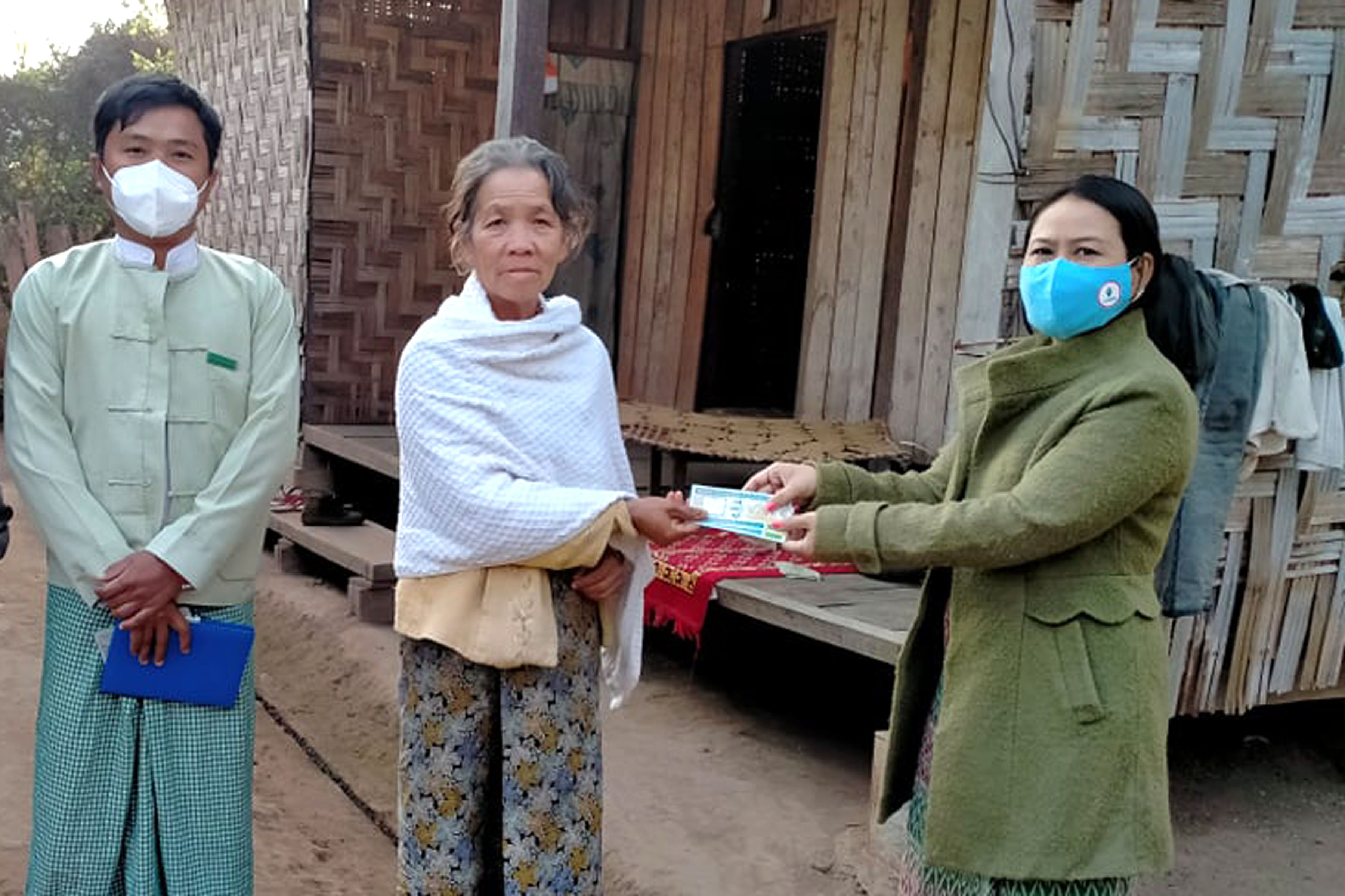 မြို့နယ်စီမံခန့်ခွဲမှုကော်မတီဥက္ကဋ္ဌ ဦးနေအောင်၏ဦးဆောင်မှုဖြင့် ဌာနဆိုင်ရာတာဝန်ရှိသူများ၊ ရပ်ကွက်နှင့် ကျေးရွာ အုပ်စုအုပ်ချုပ်ရေးမှူးတို့က အုပ်စုများခွဲ၍ မြို့နယ်အတွင်းရှိ ရပ်ကွက်နှင့် ကျေးရွာအုပ်စု (၂၀)စုမှ ပုံမှန်ဝင်ငွေမရှိသော အခြေခံလူတန်းစား ထပ်တိုးအိမ်ထောင်စု(၇၅၉)စုအား အိမ်ထောင်စုတစ်စုလျှင် ငွေကျပ်-၂၀၀၀ဝိ/ နှုန်းဖြင့် စုစုပေါင်း ငွေကျပ်-၁၅,၁၈၀,၀၀ဝိ/ ကို ဒေသခံပြည်သူလက်ဝယ်အရောက် သွားရောက်ထောက်ပံ့ပေးခဲ့သည်။