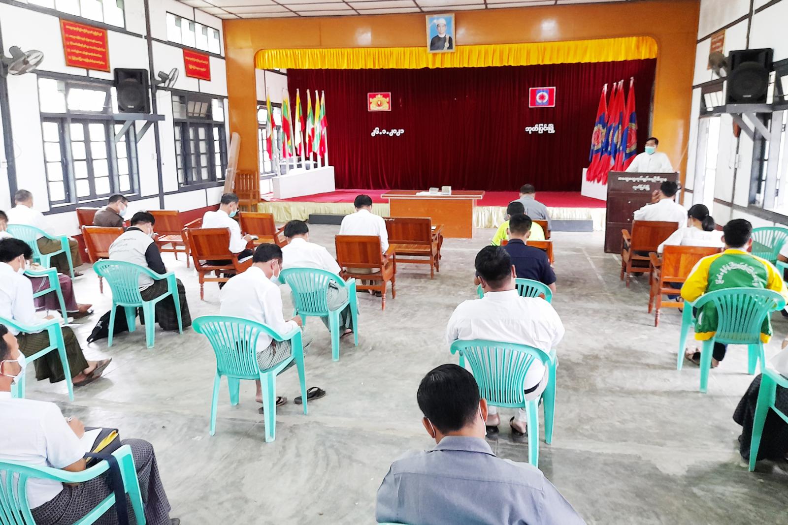 ရှေးဦးစွာမြို့နယ်အုပ်ချုပ်ရေးမှူး ဦးတင်မျိုးအောင်ကနိုင်ငံတော်မှ အခြေခံလူတန်းစား ထပ်ထိုး အိမ်ထောင်စုများကို ထောက်ပံ့ပေးအပ်ရာတွင် သက်ဆိုင်ရာ ရပ်ကွက်/ကျေးရွာ အုပ်ချုပ်ရေးမှူး များနှင့် ကြီးကြပ်ရေးအဖွဲ့များအနေဖြင့် ကိုဗစ်-၁၉ ရောဂါကာကွယ်ရေးအတွက် ညွှန်ကြားချက်များနှင့်အညီဆောင်ရွက်ကြရန်နှင့်သက်ဆိုင်ရာအိမ်ထောင်စုများ လက်ဝယ် အရောက် ထောက်ပံ့ပေးအပ် ကြရန်နှင့်ဆောင်ရွက်ရမည် လုပ်ငန်းများအား ရှင်းလင်းပြောကြားသည်။