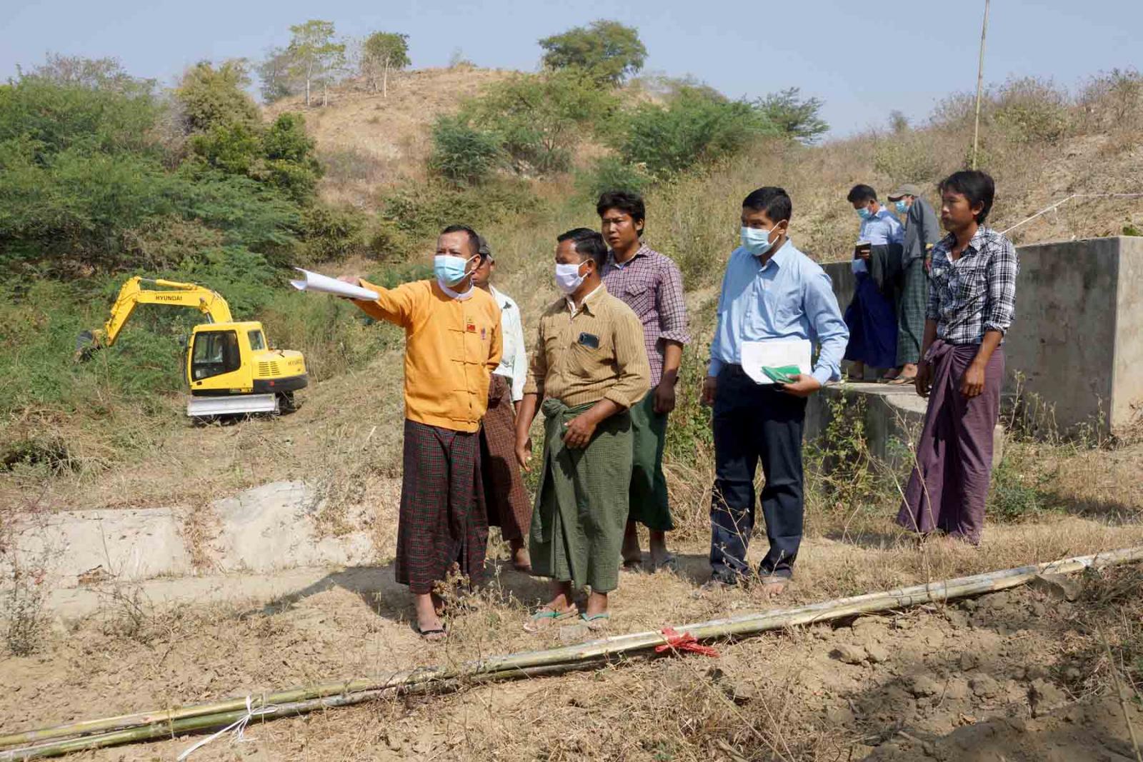 မန္တလေးတိုင်းဒေသကြီး မြင်းခြံမြို့နယ် ပျားကျေးရွာရှိ တောင်ကြားဝဆည် ပြုပြင်ခြင်း လုပ်ငန်းဆောင်ရွက်နေမှုများအား ကွင်းဆင်း စစ်ဆေးခြင်းကို ယမန်နေ့ နံနက် ၁၀ နာရီ အချိန်က မန္တလေးတိုင်းဒေသကြီး လွှတ်တော်ကိုယ်စားလှယ် ဦးချမ်းမြေ့၊ မြို့နယ်အုပ်ချုပ်ရေးမှူး ဦးညီညီ အောင်၊ မြို့နယ်ဆည်မြောင်းနှင့် ရေအသုံးချမှုစီမံခန့်ခွဲရေးဦးစီးဌာန ဦးစီးအရာရှိ ဦးဇော်မျိုးသန့်တို့ က စစ်ဆေးခဲ့ကြသည်။
