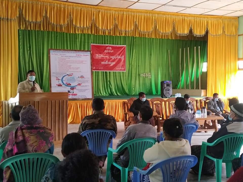 ရှေးဦးစွာ မြို့နယ်အုပ်ချုပ်ရေးမှူး ဦးကျော်လွင်က အခမ်းအနား တက်ရောက်လာသည့် အိမ်ထောင်စု ကိုယ်စားလှယ်များအား ရပ်ကွက်(သို့)ကျေးရွာအုပ်စု အုပ်ချုပ်ရေးဆိုင်ရာဥပဒေ၊ နည်းဥပဒေများ၊ ဒုတိယအကြိမ်ပြင်ဆင်သည့် နည်းဥပဒေပါ သိမှတ်ဖွယ်ရာများအား အသိပညာပေးခြင်းနှင့် ဆယ်အိမ်စု၊ ရာအိမ်စု၊ ဆယ်အိမ်မှူး၊ ရာအိမ်မှူး၊ အုပ်ချုပ်ရေးမှူး ရွေးချယ်တင်မြှောက်ခြင်းဆိုင်ရာ လုပ်ငန်းစဉ်များအား ဆောင်ရွက်ရာတွင် အဓိကလိုက်နာရမည့် အချက်များအား ဖြည့်စွက်ရှင်းလင်းပေးခြင်း၊ Your Right Your Choice သင့်အခွင့်အရေး သင်ရွေးချယ်ပေးနိုင်ဖို့ ဆောင်ပုဒ်နဲ့အညီ ကိုယ့်ကံ ကြမ္မာကိုယ်ဖန်တီးရမှာဖြစ်သည့်အတွက် မိမိဒေသ၊ မိမိရပ်ကွက် ၊ မိမိလူမျိုးအတွက် အကျိုးပြုနိုင်မည့် အုပ်ချုပ်ရေးမှူးကောင်းများ ပေါ်ထွက်လာစေရန် ယခုရွေးချယ်မည့် ကြီးကြပ်ရေးအဖွဲ့(၅)ဦးမှ ဆယ်အိမ်မှူး၊ ရာအိမ်မှူး ရွေးချယ်ခြင်းနှင့် အုပ်ချုပ်ရေးမှူးရွေးချယ်ခြင်းလုပ်ငန်းစဉ် တစ်ခုလုံးအား ဦးဆောင်၍ ဆောင်ရွက်ရမည်ဖြစ်ရာ ရပ်ကွက်နေပြည်သူများအနေဖြင့် မိမိတို့အားကိုးယုံကြည်ရသော သူကို ရွေးချယ်ကြရန်၊ ကိုဗစ်-၁၉ ရောဂါကာကွယ်ဆေး ပြည်သူအားလုံး ထိုးနှံရေးအတွက် ရပ်ကွက်အတွင်း ကွင်းဆင်း၍ လူဦးရေစာရင်းများ ကောက်ခံလျက်ရှိရာ စာရင်းပေးသွင်းခြင်း လုပ်ငန်းများတွင်လည်း ပူးပေါင်းပါဝင်ပေးကြပါရန် ပြောကြားသည်။
