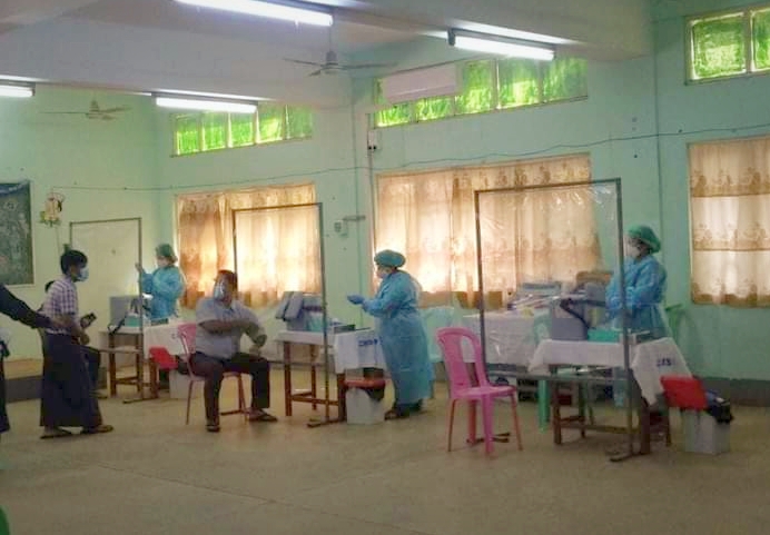 မကွေးတိုင်းဒေသကြီး မကွေးမြို့ တိုင်းပြည်သူ့ဆေးရုံကြီးက ကျန်းမာရေး ဝန်ထမ်းများကို ယနေ့ နံနက်ပိုင်းမှ စတင်ကာ ကိုဗစ်-၁၉ ကာကွယ်ဆေး ထိုးနှံပေးနေပြီ ဖြစ်ကြောင်း သိရသည်။