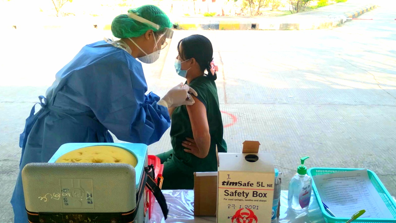ထိုသို့ဆောင်ရွက်ရာတွင် လယ်ဝေးမြို့နယ် ခုတင်(၁၀၀)ဆေးရုံအုပ်ကြီး ဒေါက်တာ နန္ဒာကျော်က ကြီးကြပ်၍ ကျန်းမာရေးဝန်ထမ်းများအား ကိုယ်အပူချိန်တိုင်းတာခြင်း၊ သွေးပေါင်ချိန်တိုင်းခြင်းနှင့် ကျန်းမာရေးဆိုင်ရာ အချက်အလက်များကို မေးမြန်းပြီးမှသာ ကိုဗစ်-၁၉ ကာကွယ်ဆေး ထိုးနှံပေးသည်။ ထို့နောက် ကာကွယ်ဆေးထိုးနှံပေးပြီးသူများအား မိနစ် (၃၀)အကြာ စောင့်ကြည့်ခြင်းများ ဆောင်ရွက်ခဲ့သည်။