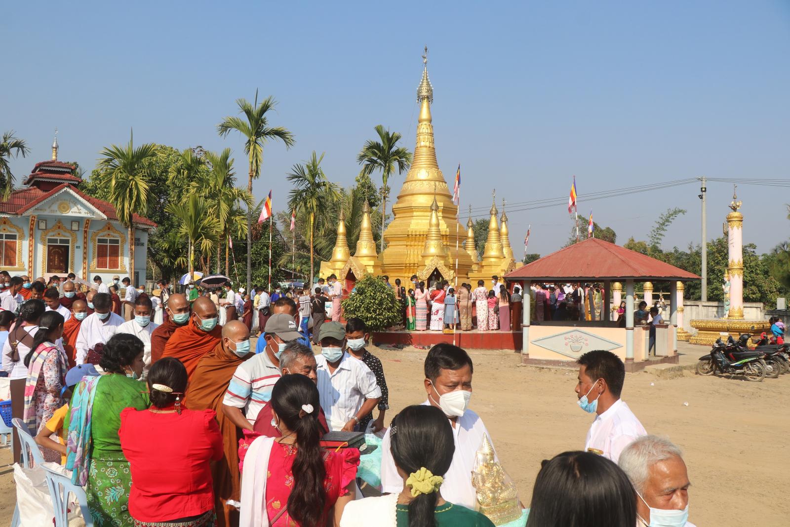 ထိုသို့ ဆွမ်းဆန်စိမ်းလောင်းလှူရာတွင် တောင်တန်းသာသနာပြု(ဗဟို)ကျောင်းဆရာတော် တောင်တန်းသာသနာပြု (ဗဟို)ကျောင်းတိုက် ကျောင်းထိုင်ဆရာတော် (မဟာသဒ္ဒမ္မ ဇောတိကဓဇ) ဦးနန္ဒောဘာသ၊ စိတ္တသုခကျောင်းတိုက် ကျောင်းထိုင်ဆရာတော် ဦးဓမ္မဝံသနှင့် မြို့နယ်အတွင်းရှိ ပင့်သံဃာ အပါး(၄၅)ပါးတို့အား ဒါယကာ၊ ဒါယိကာမ အပေါင်းတို့က ဝတ္ထုငွေ၊ ဆွမ်းဆန်စိမ်းနှင့် လှူဖွယ်ဝတ္ထု ပစ္စည်းများကို လောင်းလှူကုသိုလ် ပြုခဲ့ကြောင်း သိရသည်။