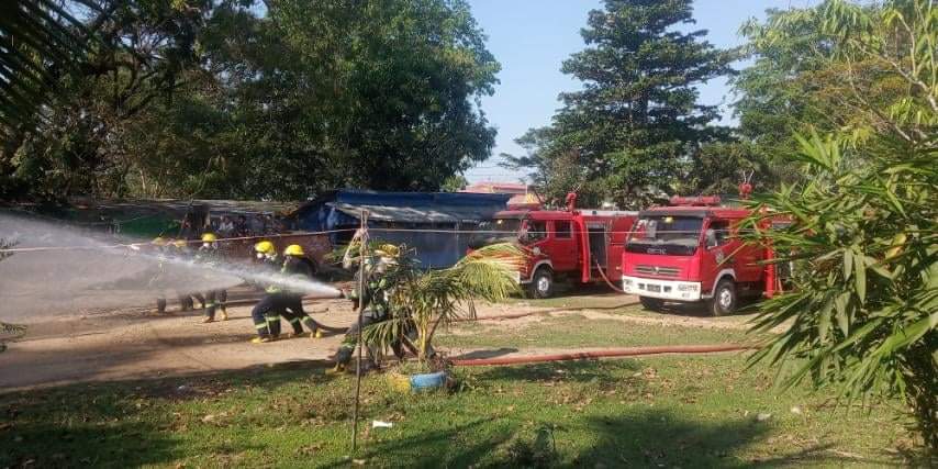 ထိုသို့မီးဘေးသရုပ်ပြလေ့ကျင့်ရာတွင် ခရိုင်ဦးစီးမှူးဦးဌေးဝေနှင့် သန္ဓေမီးသတ်တပ်ဖွဲ့ဝင် (၁၇)ဦးတို့မှ မီးငြှိမ်းသတ်ယာဉ်(၄)စီးတို့ဖြင့် ရေဆင့်ကဲပေးပို့ခြင်းနှင့် မီးငြှိမ်းသတ်ရေး လုပ်ငန်းများကို လေ့ကျင့်ဆောင်ရွက်ကြကြောင်း သိရှိရသည်။