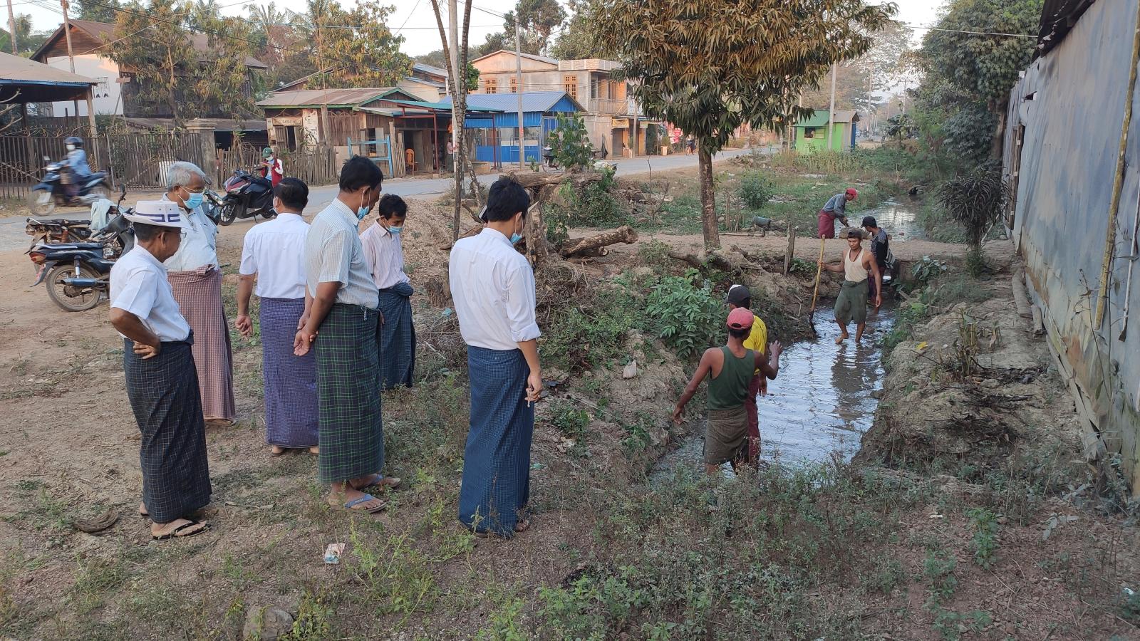 ပဲခူးတိုင်းဒေသကြီး၊ သာယာဝတီခရိုင်၊ ကြို့ပင်ကောက်မြို့ပေါ်ရပ်ကွက်များ နွေရာသီရေရှား ပါမှု မဖြစ်စေရေးနှင့် မြို့ပေါ်ရေကန်များ အတွင်း ဆည်ရေရောက်ရှိစေရေးတို့အတွက် ရေသွယ် မြောင်းများ ဖောက်လုပ်နေမှုအား တာဝန်ရှိသူများ လိုက်လံကြည့်ရှု စစ်ဆေး ခြင်းကို ယမန်နေ့ မွန်းလွဲပိုင်းက ဆောင်ရွက်ခဲ့သည်။