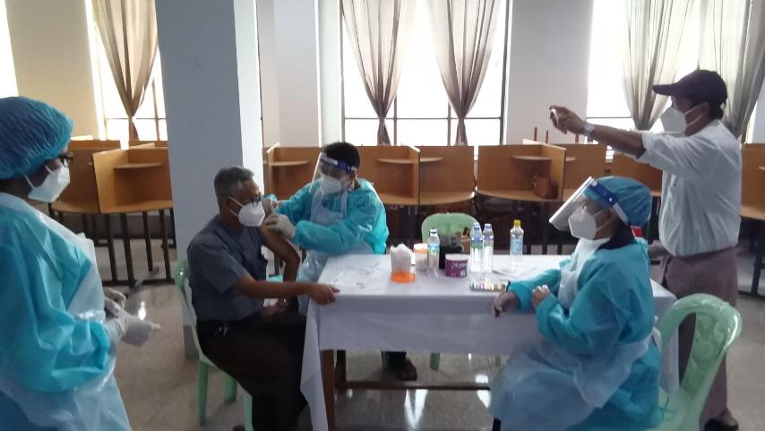 ကာကွယ်ဆေးထိုးပေးရာသို့ တိုင်းရင်းဆေးတက္ကသိုလ်(မန္တလး)မှ ပါမောက္ခချုပ် ပါမောက္ခဒေါက်တာသိန်းဇော်လင်း၊ ဒုတိယပါမောက္ခချုပ်(စီမံ) ပါမောက္ခ ဦးဝင်းဟန်၊ ဒုတိယပါမောက္ခချုပ်(သင်ကြား) ပါမောက္ခ ဦးဝင်းစိုး၊ မော်ကွန်းထိန်း ဦးထွန်းမောင်တို့က အနီး ကပ်ကြီးကြပ် စောင့်ကြည့်ပေးခဲ့ကြကြောင်း သိရသည်။