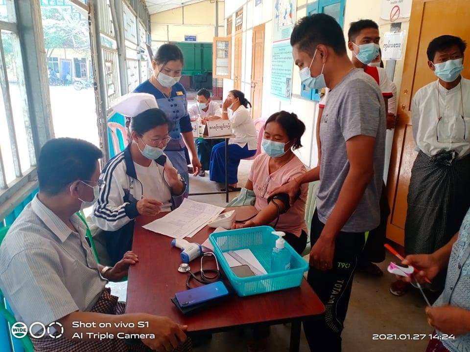 မကွေးတိုင်းဒေသကြီး၊ သရက်ခရိုင်၊ ဆင်ပေါင်ဝဲမြို့၌ ပြည်သူ့ကျန်းမာရေးဝန်ထမ်းများအား ကိုဗစ်-၁၉ကာကွယ်ဆေး (COVISHIELD) ထိုးနှံခြင်းလုပ်ငန်းများကို ယမန်နေ့ညနေ(၃)နာရီက မြို့နယ် ပြည်သူ့ ဆေးရုံတွင် စတင်ထိုးနှံပေးခဲ့ကြောင်း သိရသည်။
