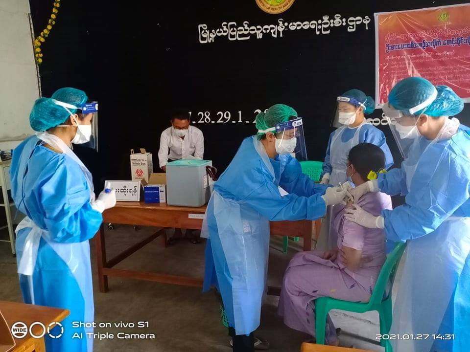 အဆိုပါ ကာကွယ်ဆေးစတင်ထိုးနှံရာတွင် ကျန်းမာရေးနှင့်အားကစားဝန်ကြီးလက်အောက်ရှိ ဆင်ပေါင်ဝဲ မြို့နယ် ကျန်းမာရေးနှင့်ကုသရေးဦးစီးဌာနမှ ဝန်ထမ်း(၇၇)ဦး၊ တိုင်းရင်းဆေးကုသရေးဦးစီး ဌာနမှဝန်ထမ်း (၃)ဦး၊ စုစုပေါင်း(၈၀)ဦးတို့အား စတင်ထိုးနှံပေးခဲ့ပြီး ပထမအကြိမ်ကာကွယ်ဆေးထိုးနှံ ပြီးသူများကို ရက်သတ္တပတ် (၄)ပတ်ခြား၍ ဒုတိယအကြိမ် ကိုဗစ်-၁၉ရောဂါကာကွယ်ဆေးကို ထိုးနှံ ပေးသွား မည်ဖြစ် ကြောင်းနှင့် ကျန်ရှိနေသည့် ဝန်ထမ်းများကိုလည်း ဆက်လက်ထိုးနှံပေးသွားမည်ဖြစ် ကြောင်း ဆင်ပေါင်ဝဲ မြို့နယ် ပြည်သူ့ဆေးရုံမှ ဆေးရုံအုပ်ကြီးဒေါက်တာမွန်စိုးရီထံမှ သိရသည်။