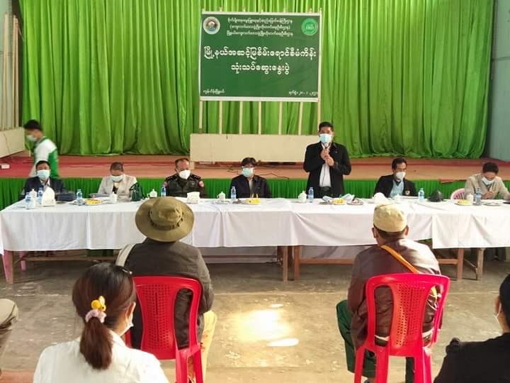 ရှေးဦးစွာ မြို့နယ်စီမံခန့်ခွဲမှုကော်မတီဥက္ကဋ္ဌ ဦးစိုးဝင်းက အဖွင့်အမှာ စကားပြောကြားခဲ့သည်။ ယင်းနောက် ပြည်နယ်လွှတ်တော် ကိုယ်စားလှယ် အမှတ်(၁)ဦးစိုင်းစံထွန်း၊ ပြည်နယ်လွှတ်တော် ကိုယ်စားလှယ် အမှတ်(၂) ဦးစိုင်းအောင်ကျော်ဦး တို့က အမှာစကားပြောကြားခဲ့ကြပြီး ကျေးလက်ဒေသ ဖွံ့ဖြိုးတိုးတက် ရေးဦးစီးဌာန၊ မြို့နယ်ဦးစီးမှူး ဦးတင်ဆူးက မြို့နယ်အတွင်း အကောင်အထည်ဖော်ဆောင်ရွက်လျက်ရှိသည့် မြစိမ်းရောင်စီမံကိန်းကျေးရွာများတွင် တွေ့ကြုံရ သည့် အခက်အခဲများ၊ စိန်ခေါ်မှုများ၊ အားနည်းချက် ၊အားသာချက်များနှင့် ပတ်သက်၍ ဆွေးနွေးတင်ပြခဲ့သည်။