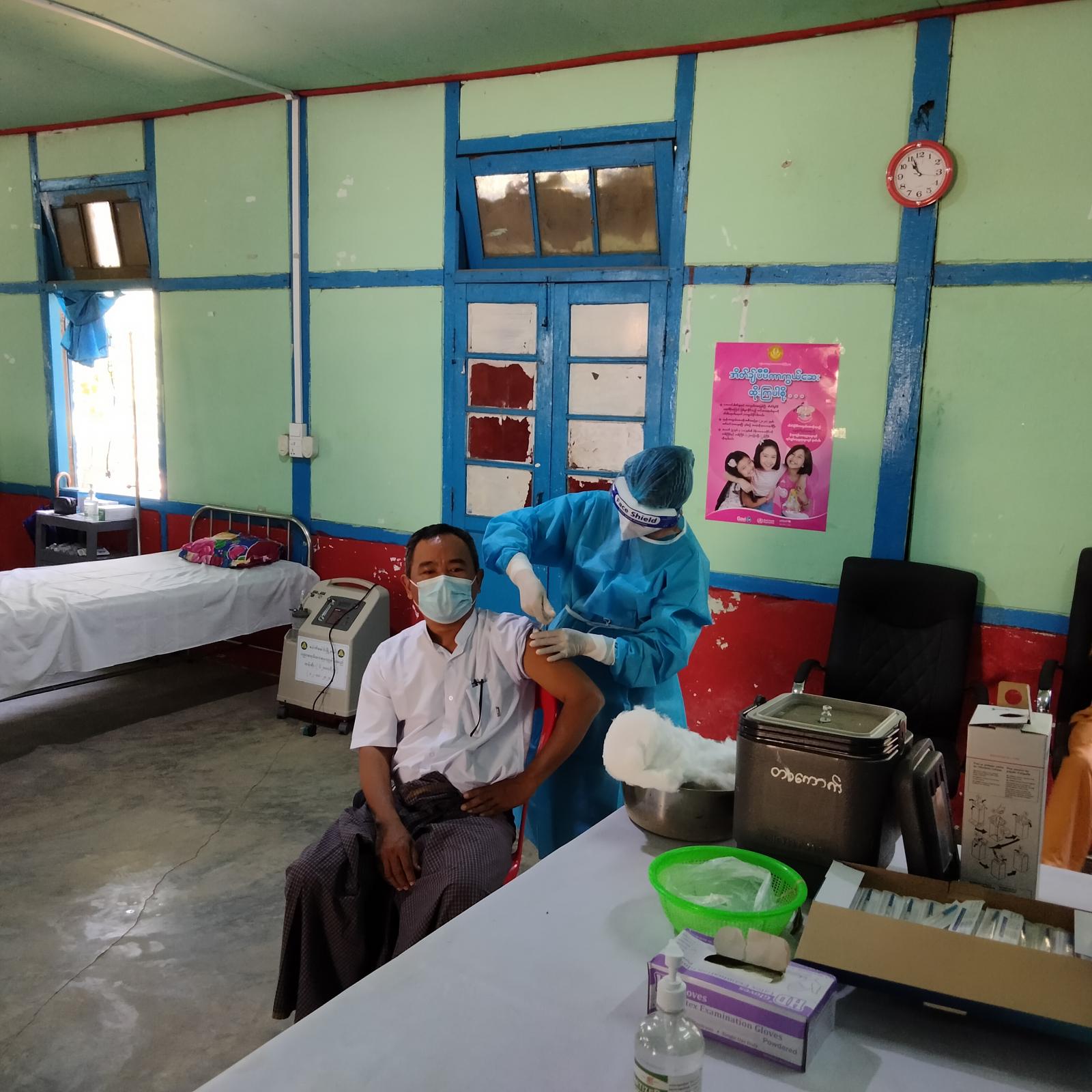 အဆိုပါ ပထမအကြိမ် ကာကွယ်ဆေးကို မြို့နယ်အတွင်းရှိ ဆေးရုံများ၊ ကျေးလက် ကျန်းမာရေးဌာနများမှ ကျန်းမာရေးဝန်ထမ်းများ၊ မြို့နယ်တိုင်းရင်းဆေးဦးစီးဌာနနှင့် အားကစားနှင့် ကာယပညာဦးစီးဌာန ဝန်ထမ်းများ စုစုပေါင်း(၁၈၇)ဦးကို ယနေ့ နံနက်မှ စတင်၍ ပထမအကြိမ် စတင်ထိုးနှံပေးလျက်ရှိကြောင်း မြို့နယ်ကျန်းမာရေးဦးစီးဌာနမှ သိရ သည်။