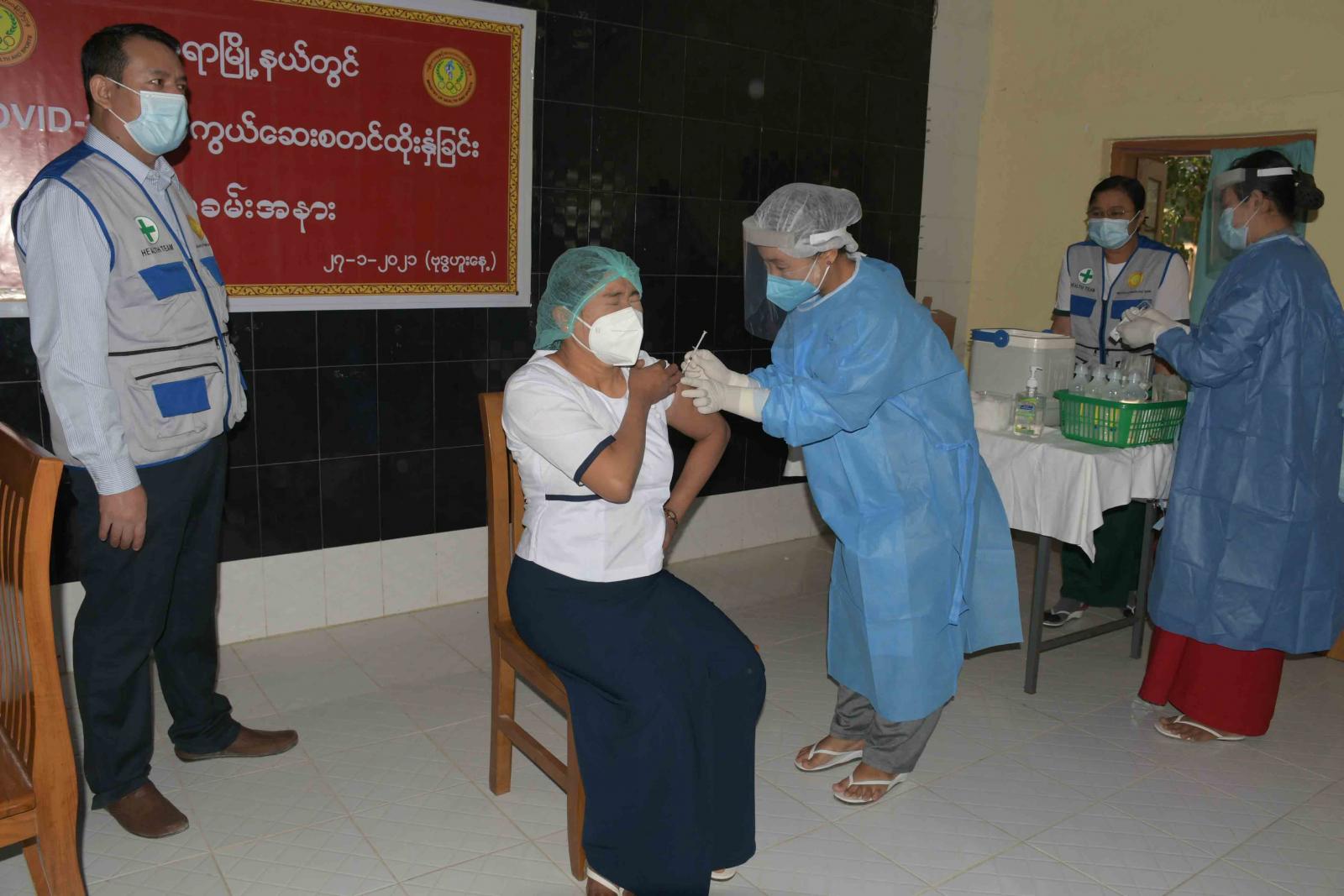 ထို့သို့ ကိုဗစ်၁၉ကာကွယ်ဆေးများထိုးနှံရာတွင် ဇန်နဝါရီလ ၂၇ရက်နေ့မှ စတင်၍ မြို့နယ်ပြည်သူ့ ကျန်းမာရေးဦးစီးဌာနမှူး မြို့နယ်ဆရာဝန်ကြီး ဒေါက်တာသန့်လွင်ထွန်း ဦးဆောင်၍ မြို့ပေါ်ရှိ ကျန်းမာရေး ဝန်ထမ်း(၇၇)ဦးအား လည်းကောင်း ယနေ့ ဇန်နဝါရီလ ၂၈ရက်နေ့တွင် ကျေးလက်ကျန်းမာရေး န်ထမ်း(၁၇၈)ဦးနှင့် တိုင်းရင်းဆေးပညာဦးစီးဌာနမှ (၁)ဦး စုစုပေါင်း (၂၅၆)ဦးကို ကျန်းမာရေးနှင့်အားကစားဝန်ကြီးဌာန၏ လမ်းညွှန်ချက်များနှင့်အညီ ကာကွယ်ဆေးများ ပထမအကြိမ်းထိုးနှံပေးခဲ့ကြောင်းသိရသည်။