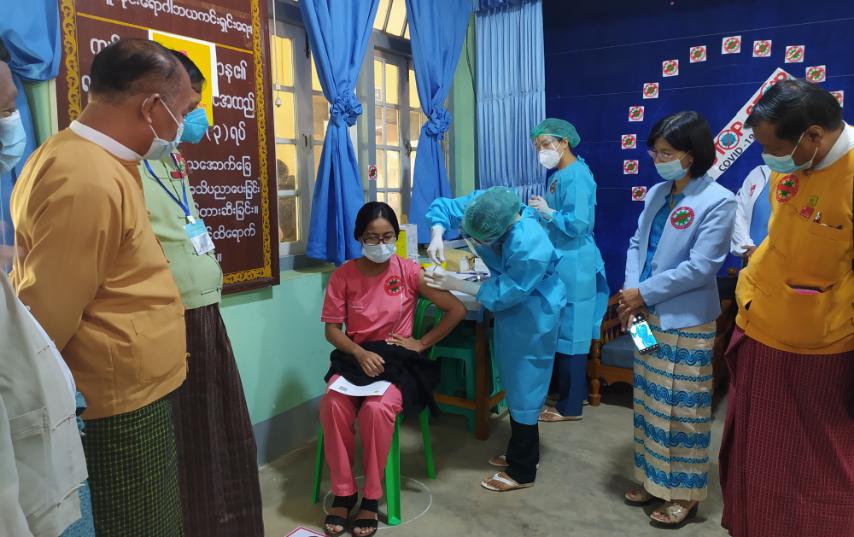 မန္တလေးတိုင်းဒေသကြီး ညောင်ဦးမြို့နယ်တွင် ကျန်းမာရေးနှင့်အားကစားဝန်ကြီး ဌာန၊ လက်အောက်ရှိ ဌာနဆိုင်ရာများမှဝန်ထမ်းများအား ကိုဗစ်-၁၉ ရောဂါကာကွယ်ဆေး ထိုးနှံပေး ခြင်း ဖွင့်ပွဲအခမ်းအနားကို ညောင်ဦးခရိုင် ကုတင်(၂၀၀)ပြည်သူ့ဆေးရုံကြီးတွင် ယနေ့ နံနက် ၈နာရီခွဲအချိန်က အခမ်းအနားဖြင့်ဖဲကြိုးဖြတ်ဖွင့်လှစ်ပေးခဲ့ကြောင်း ညောင်ဦးခရိုင် ပြည်သူ့ဆေးရုံ အုပ်ကြီး ဒေါက်တာအောင်အောင်ထံကသိရသည်။