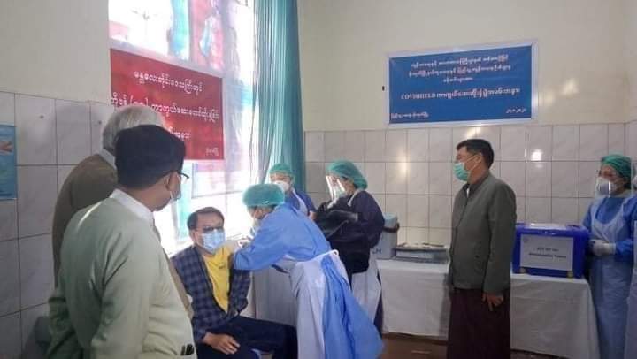 အဆိုပါ ကိုဗစ်-၁၉ ရောဂါကာကွယ်ဆေး (COVISHIELD) ထိုးနှံရာသို့ ပြည်သူ့လွှတ်တော်ကိုယ်စားလှယ် ဦးစောသောင်းတင်၊ အထွေထွေအုပ်ချုပ်ရေးဦးစီးဌာနမှ မြို့နယ်အုပ်ချုပ်ရေးမှူး ဦးလှမိုးဦးနှင့် ဆေးရုံအုပ်ကြီးဒေါက် တာဇော်မင်းသိုက်တို့မှ လေ့လာကြည့်ရှု့ခဲ့ကြပြီး ပထမဆုံးနေ့တွင် ကိုဗစ်-၁၉ ရောဂါကာကွယ်ဆေး(COVISHIELD)ကိုကျန်းမာ ရေး ၀န်ထမ်း အယောက်( ၂၀၀) ကျော်တို့အားထိုးနှံပေးခဲ့ပြီး ကျန်ရှိ၀န်ထမ်းများအား ဆက်လက်ထိုးနှံပေးသွားမည်ဖြစ်ကြောင်း သိရှိရသည်။