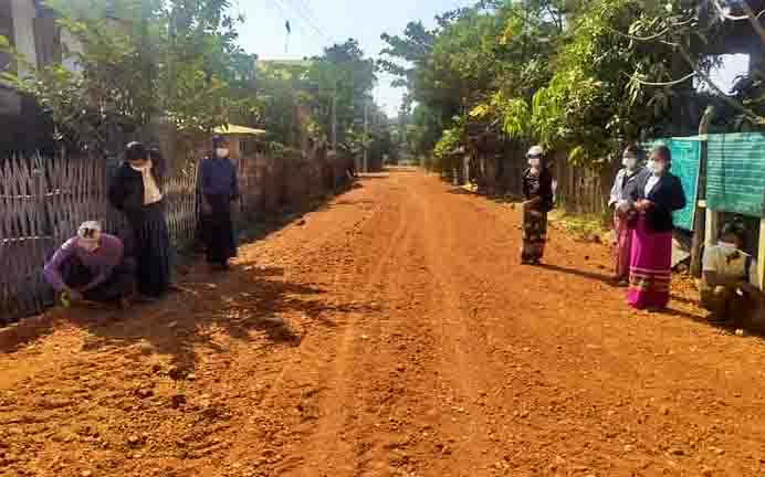 အဆိုပါ ကျေးရွာတွင်းလမ်း မြေနီကျောက်စရစ်လမ်းခင်းကျင်းဆောင်ရွက်ခြင်းလုပ်ငန်းကို ကျေးရွာနေပြည်သူများ၏ ဦးဆောင်မှုဖြင့် ဆောင်ရွက်နေခြင်းဖြစ်ပြီး လုပ်ငန်းအရည်အသွေး ပြည့်မီရေးနှင့် အချိန်မီဆောင်ရွက်ပြီးစီးနိုင်ရေးအတွက် မြို့နယ် ကျေးလက်ဒေသဖွံ့ဖြိုးတိုးတက်ရေးဦးစီးဌာနမှ လိုအပ်သော နည်းပညာများ ပံ့ပိုးကူညီဆောင်ရွက်ပေးလျက်ရှိကြောင်း သိရသည်။ ယနေ့တွင် ကျေးရွာနေပြည်သူများ၏ စည်းလုံးညီညွတ်မှုနှင့် ကြိုးပမ်းအားထုတ်မှုကြောင့် ကျေးရွာတွင်းမြေနီကျောက်စရစ် အဆင့်မြှင့်တင်ခြင်းလုပ်ငန်းမှာ ၇၅ ရာခိုင်နှုန်းခန့် ဆောင်ရွက်ပြီးစီးသွားပြီဖြစ်ကြောင်း ပွင့်ဖြူမြို့နယ်ကျေးလက်ဒေသ ဖွံ့ဖြိုး တိုးတက်ရေးဦးစီးဌာန မြို့နယ်ဦးစီးမှူး ဦးလှဌေးမောင် ထံက သိရသည်။