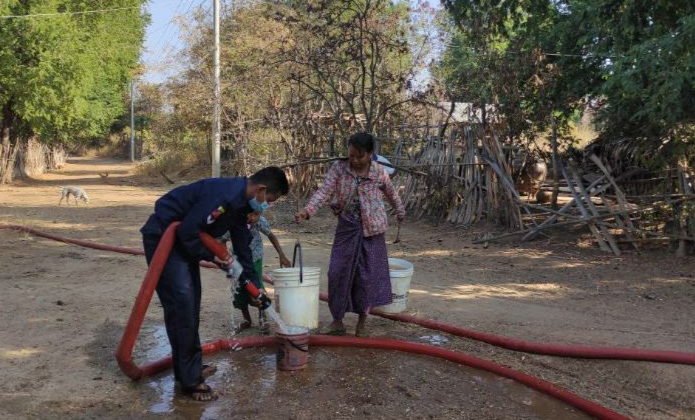 မန္တလေးတိုင်းဒေသကြီး ညောင်ဦးမြို့နယ် တောင်ဇင်းတိုက်နယ်ရှိ ညောင်ပင်သာ ကျေးရွာသို့ ခရိုင်မီသတ်တပ်ဖွဲ့ဝင်များနှင့်အရန်မီးသတ်တပ်ဖွဲ့ဝင်များက ယနေနံနက် ၈နာရီခွဲအချိန်က ခရိုင်မီးသတ် တပ်ဖွဲ့ ဦးထက်အောင်(လက်ထောက်ညွှန်ကြားရေး မှူး)ဦးထက်အောင် ဦးဆောင် သော မီးသတ်တပ်ဖွဲ့ဝင်များက သောက်သုံးရေရှားပါးပြီး အကူအညီတောင်းလာ သောကြောင့် သောက်သုံးရေသွားရောက်လှူဒါန်းခဲ့ကြောင်းသိရသည်။