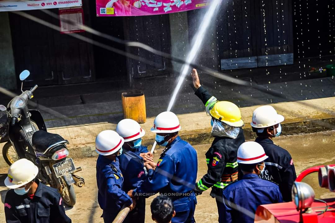 အဆိုပါ မြို့မစည်ပင်သာယာစျေးကြီး မီးဘေးကြိုတင်ကာကွယ်ရေး ဇာတ်တိုက်လေ့ကျင့်ရာသို့ မြို့နယ်အထွေထွေအုပ်ချုပ်ရေး ဦးစီးဌာန၊ မြို့နယ် အုပ်ချုပ်ရေးမှူး ဦးအေးကိုတင့်၊ စည်ပင်အမှုဆောင်အရာရှိ ဦးအောင်မိုးဦး၊ မြို့နယ်မီးသတ် ဦးစီးမှူး ဦးသက်ချိုဦးနှင့် ဒုတိယဦးစီးမှူးဦးစိုးမိုးအောင် မြို့နယ်ရဲတပ်ဖွဲ့မှူး ရဲမှူးကျော်နိုင်၊ စျေးမိစျေးဖများနှင့် စျေးသူစျေးသားများသည်မြို့နယ် မီးငြိမ်းသတ်ယာဉ်များဖြင့် မြို့မစည်ပင်သာယာစျေးကြီး ပတ်ပတ်လည်မှ လက်တွေ့မီးငြှိမ်းသတ်နည်း သရုပ်ပြရေဖျန်းပက်ခြင်း၊ စျေးသူစျေးသားများမှ မီးသတ်ဆေးဘူးများဖြင့် မီးငြှိမ်းသတ်နည်းများ ဇာတ်တိုက်လေ့ကျင့် ဆောင်ရွက် ခဲ့ကြောင်း သိရသည်။