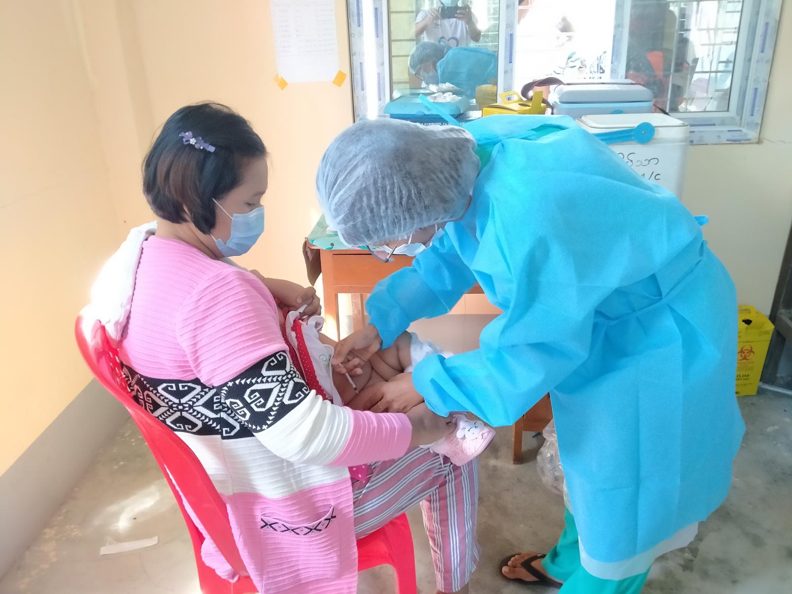 ကာကွယ်ဆေးထိုးနှံပေးရာတွင် သူနာပြုဆရာမကြီး ဒေါ်ခင်ပပလွင် ဦးဆောင်၍ သူနာပြု ဆရာမ များနှင့် ကျန်းမာရေးဝန်ထမ်းများက ကလေးငယ်များအား ပေါင်ချိန်ခြင်း၊ ကိုယ်အပူချိန် တိုင်းပေးခြင်း၊ (ဆုံဆို့နာ၊ ကြက်ညှာချောင်းဆိုး၊ မေးခိုင်ရောဂါ၊ အသည်းရောင် အသားဝါး (ဘီ)၊ ဦးနှောက်အမှေးရောင် ရောဂါ) စသည့် ငါးမျိုးစပ် ကာကွယ်ဆေး ထိုးနှံပေးခြင်း၊ ပိုလီယိုအစက်ချဆေး တိုက်ကျွေးခြင်းတို့ အပြင် ကိုယ်ဝန်ဆောင်မိခင်များအား ကျန်းမာရေးစစ်ဆေးပေးခြင်းနှင့် မေးခိုင်ရောဂါ ကာကွယ်ဆေး ထိုးနှံပေး ခြင်းတို့ကို ဆောင်ရွက်ပေးခဲ့ကြောင်း သိရသည်။