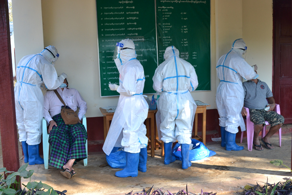 ကိုဗစ် - ၁၉ ရောဂါ ကာကွယ် တားဆီး ထိန်းချုပ်ရေးအတွက် ယာယီစောင့်ကြည့်ရန် အသွားအလာ ကန့်သတ်ထားသည့် စောင့်ကြည့်ရေးစခန်း (Quarantine Centre)တွင် မြို့နယ်ကျန်းမာရေးဦးစီးဌာနမှူး ဒေါက်တာ အောင်ဇော်ဦး၊ ဒေါက်တာစိုးသန်းထိုက်နှင့် တာဝန်ရှိသူတို့က ကြီးကြပ်ကာ စောင့်ကြည့်ထားသူ ရှင်သာမဏေ (၁၄)ပါးနှင့် ခရီးသွားပြည်သူ(၃၂)ဦးတို့၏ နှာခေါင်းနှင့် အာခေါင်တို့မှ ဓါတ်ခွဲနမူနာများအား မြို့နယ် ကျန်းမာရေးဌာန ဝန်ထမ်းများကရယူကာ မူဆယ်မြို့ ပြည်သူ့ကျန်းမာရေးဆိုင်ရာ ဓါတ်ခွဲဌာနသို့ ပို့ဆောင်စစ်ဆေး သွားမည်ဖြစ်ကြောင်း သိရသည်။