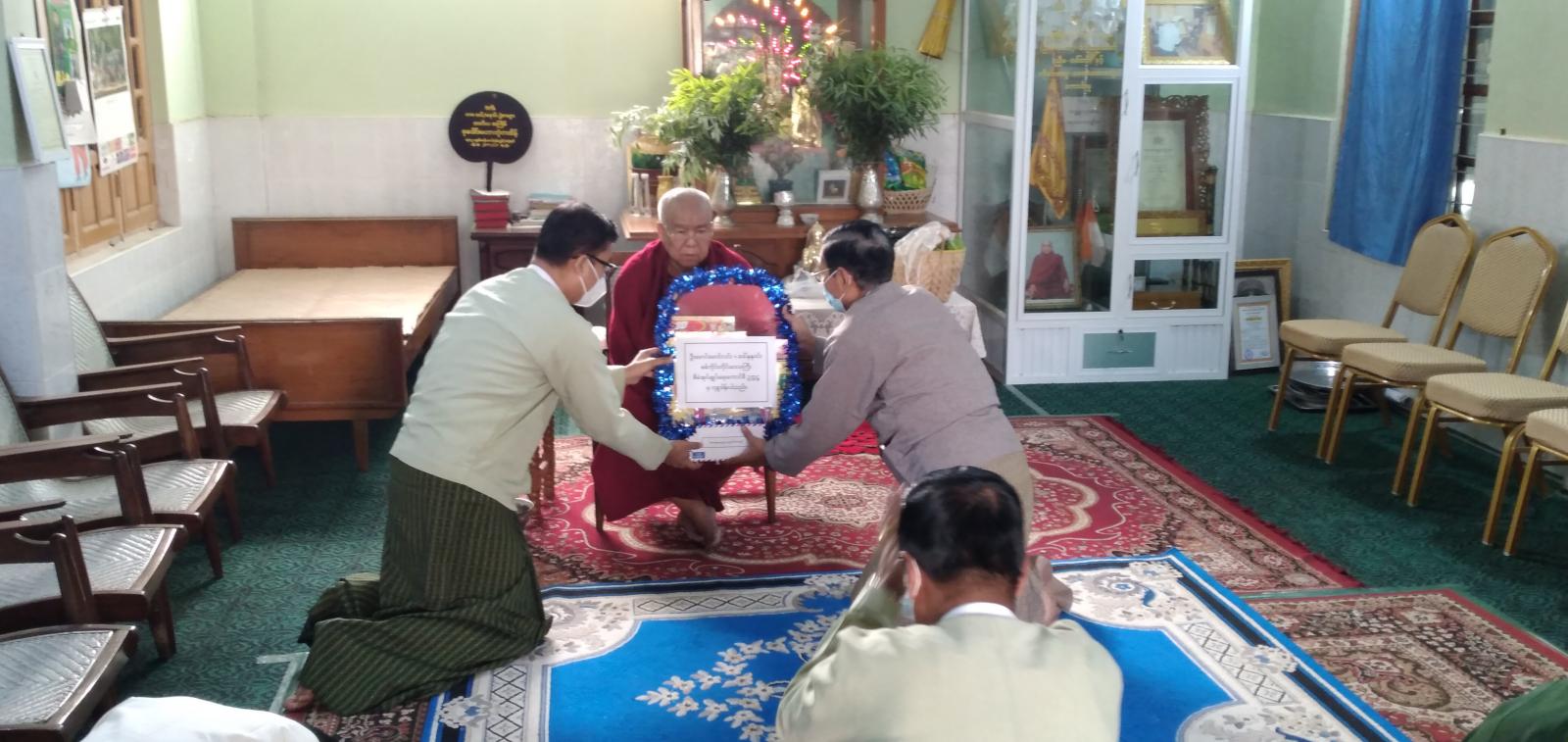 စစ်ကိုင်းတိုင်းဒေသကြီး စီမံအုပ်ချုပ်ရေးကောင်စီ ဥက္ကဋ္ဌ ဦးမောင်မောင်လင်းသည် စစ်ကိုင်းတိုင်း ဒေသကြီး စီမံအုပ်ချုပ် ရေးကောင်စီရုံးမှ တာဝန်ရှိသူများနှင့်အတူ ယနေ့ နံနက်(၉)နာရီခွဲက မုံရွာမြို့ ပေါ်ရှိ ရန်ကင်းပရိယတ္တိစာသင်တိုက်၊ မဟာဇောတိကာရာမပရိယတ္တိ စာသင်တိုက်၊ အုတ်ကန်တောရ ပရိယတ္တိစာသင်တိုက်၊ စန်းမြသီတာကျောင်းတိုက်နှင့် သဒ္ဓမ္မ ပဇ္ဇောတာရုံကျောင်းတိုက်တို့ရှိ ဆရာတော်ကြီးများအား သွားရောက်ဖူးမြော် ကြည်ညို၍ လှူဖွယ်ဝတ္ထုပစ္စည်းများ ဆက်ကပ်လှူဒါန်း ခဲ့ပြီး ဆရာတော်ကြီးများထံမှ ဩဝါဒ ခံယူခဲ့ကြောင်း သတင်းရရှိသည်။