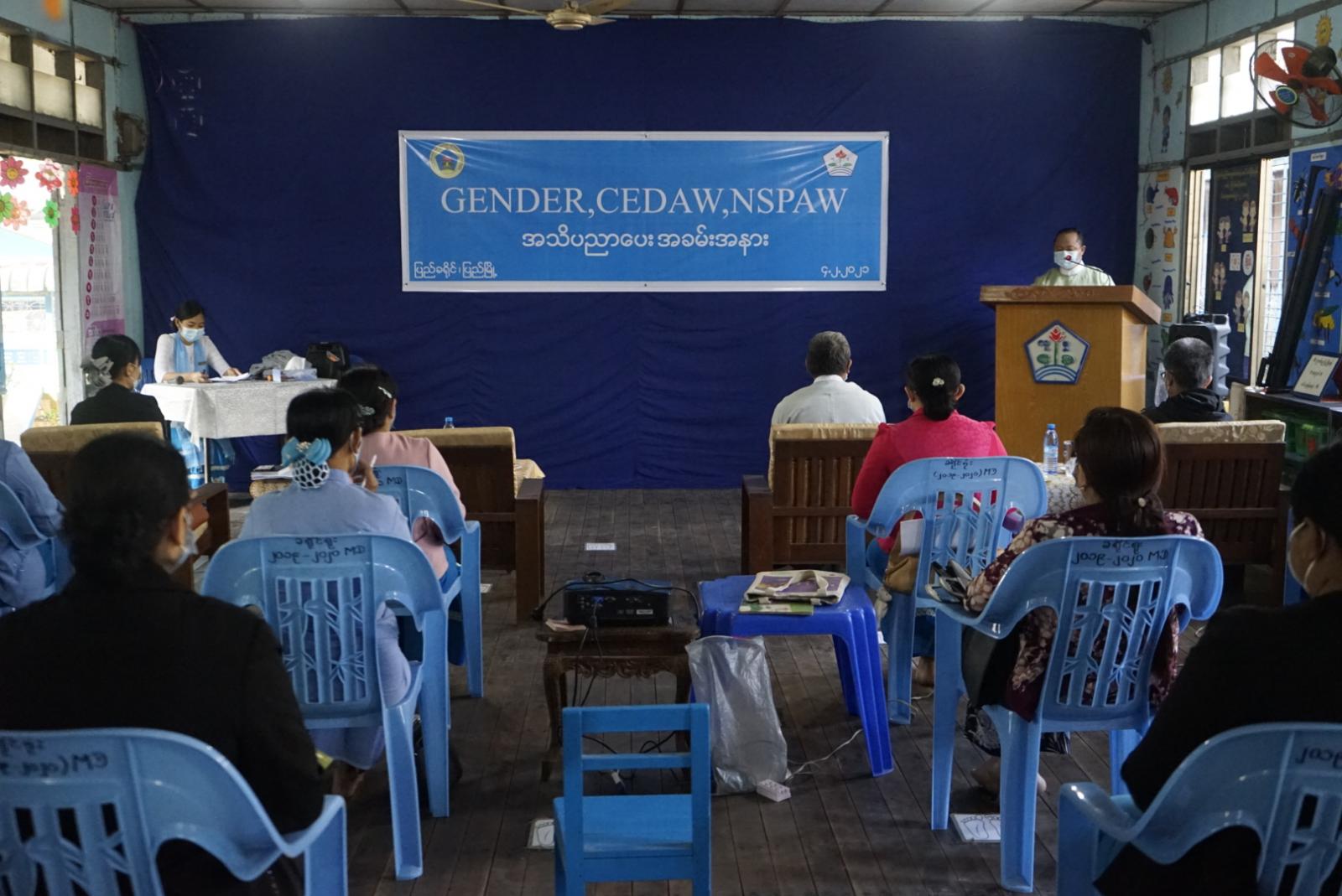 ပဲခူးတိုင်းဒေသကြီး၊ လူမှုဝန်ထမ်းဦးစီးဌာန၊ ပြည်ခရိုင်လူမှုဝန်ထမ်းရုံး၊ ပြည်ခရိုင်အမျိုးသမီး ကော်မတီမှ ကြီးမှူးကျင်းပသည့် GENDER /CEDAW/NSPAW အသိပညာပေးအခမ်းအနားကို ပြည်ခရိုင် လူမှုဝန်ထမ်းရုံး၌ ယမန်နေ့ နံနက် ၁၀ နာရီအချိန်တွင် ကျင်းပ ပြုလုပ်သည်။