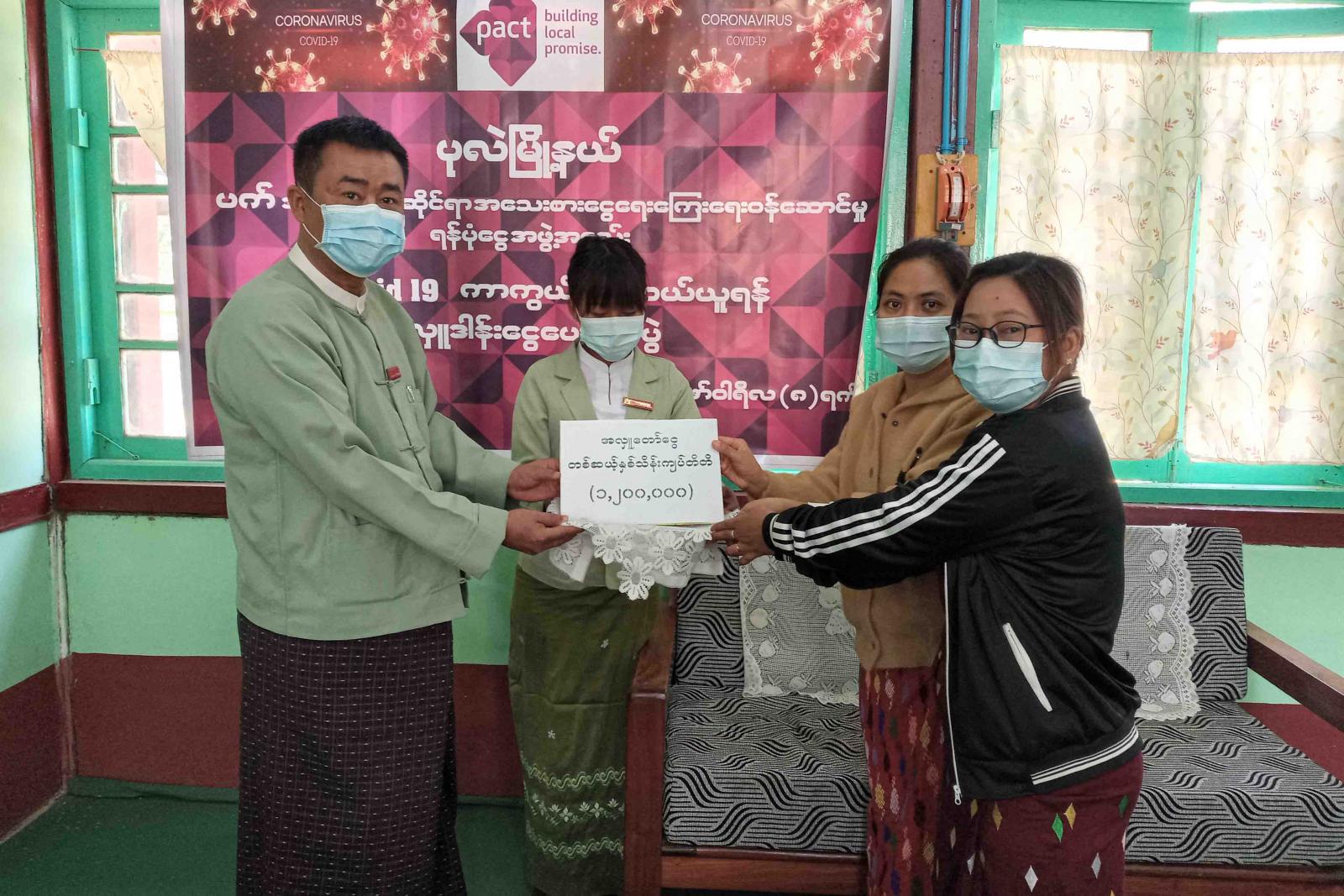 စစ်ကိုင်းတိုင်းဒေသကြီး၊ ယင်းမာပင်ခရိုင်၊ ပုလဲမြို့၊ မြို့နယ်အထွေထွေအုပ်ချုပ်ရေးဦးစီးဌာန၌ ယမန်နေ့ မွန်းလွဲ ၁ နာရီတွင် ပက်အပြည်ပြည်ဆိုင်ရာ အသေးစား ငွေရေးကြေးရေး ဝန်ဆောင်မှု ရန်ပုံငွေအဖွဲ့အစည်းမှ တာဝန်ရှိသူများက ကိုဗစ်-၁၉ ရောဂါ ကာကွယ်ဆေးဝယ်ယူရန်အတွက် ငွေကျပ် ၁၂ သိန်းကို ပေးအပ်လှူဒါန်းခဲ့ကြောင်း သိရသည်။