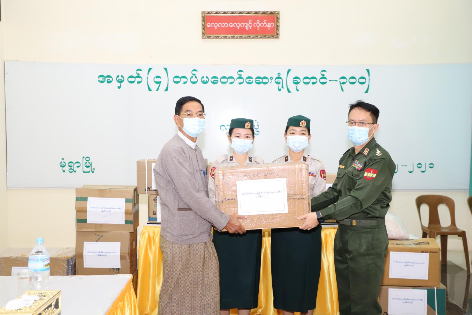 ရှေးဦးစွာ စစ်ကိုင်းတိုင်းဒေသကြီး စီမံအုပ်ချုပ်ရေးကောင်စီ ဥက္ကဋ္ဌ ဦးမောင်မောင်လင်းနှင့်အဖွဲ့သည် မုံရွာမြို့ အမှတ်(၄)တပ်မတော် ဆေးရုံ(ခုတင်-၃၀၀)တွင် တက်ရောက်ကုသနေသော ပြည်သူ(၁၄၀)ဦးအတွက် လိုအပ်သော ဆေးဝါးပစ္စည်းများကို ထောက်ပံ့ ပေးအပ်ရာ တာဝန်ရှိသူက လက်ခံရယူခဲ့ပြီး ကျေးဇူးတင်စကား ပြန်လည်ပြောကြားခဲ့သည်။