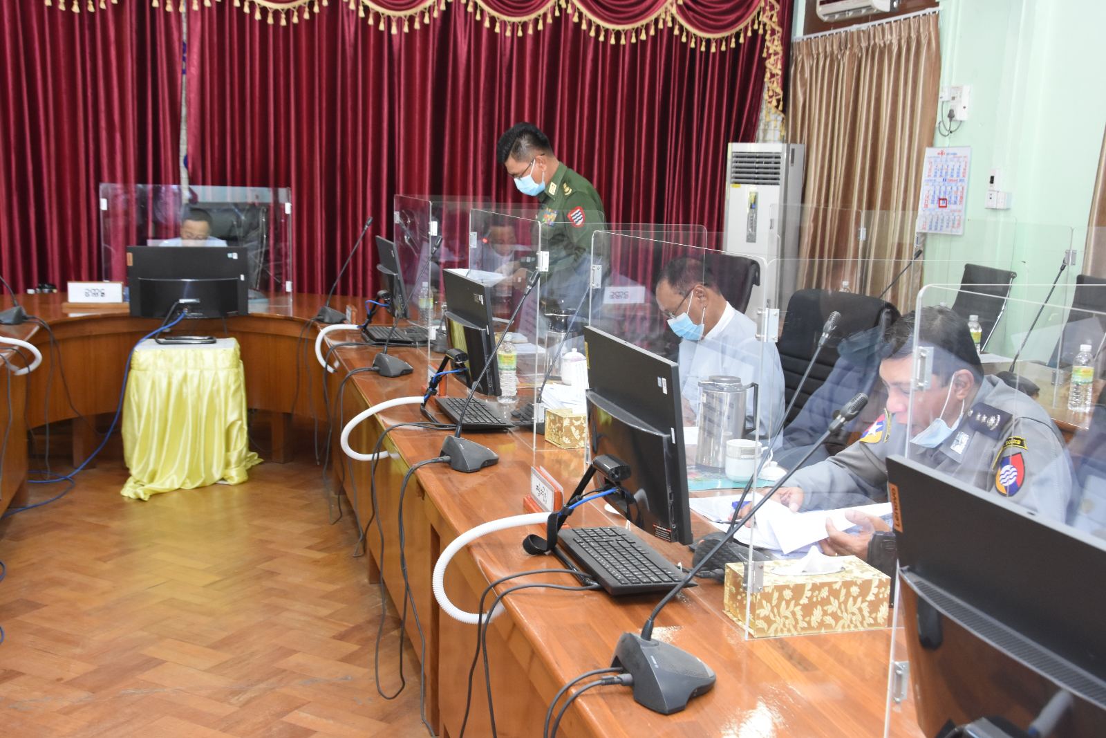 ဧရာဝတီတိုင်းဒေသကြီး၊ ပုသိမ်မြို့တွင် Coronavirus Disease 2019 (COVID-19) ထိန်းချုပ်ရေးနှင့် အရေးပေါ်တုံ့ပြန်ရေး ကော်မတီအစည်းအဝေး ၆/၂၀၂၁ လုပ်ငန်းညှိနှိုင်း အစည်းအဝေးကို ယမန်နေ့ နံနက် ၁၁:၀၀ နာရီအချိန်က တိုင်းဒေသကြီး စီမံအုပ်ချုပ်ရေးကောင်စီရုံး၊ အစည်းအဝေးခန်းမ(၁)၌ ကျင်းပသည်။
