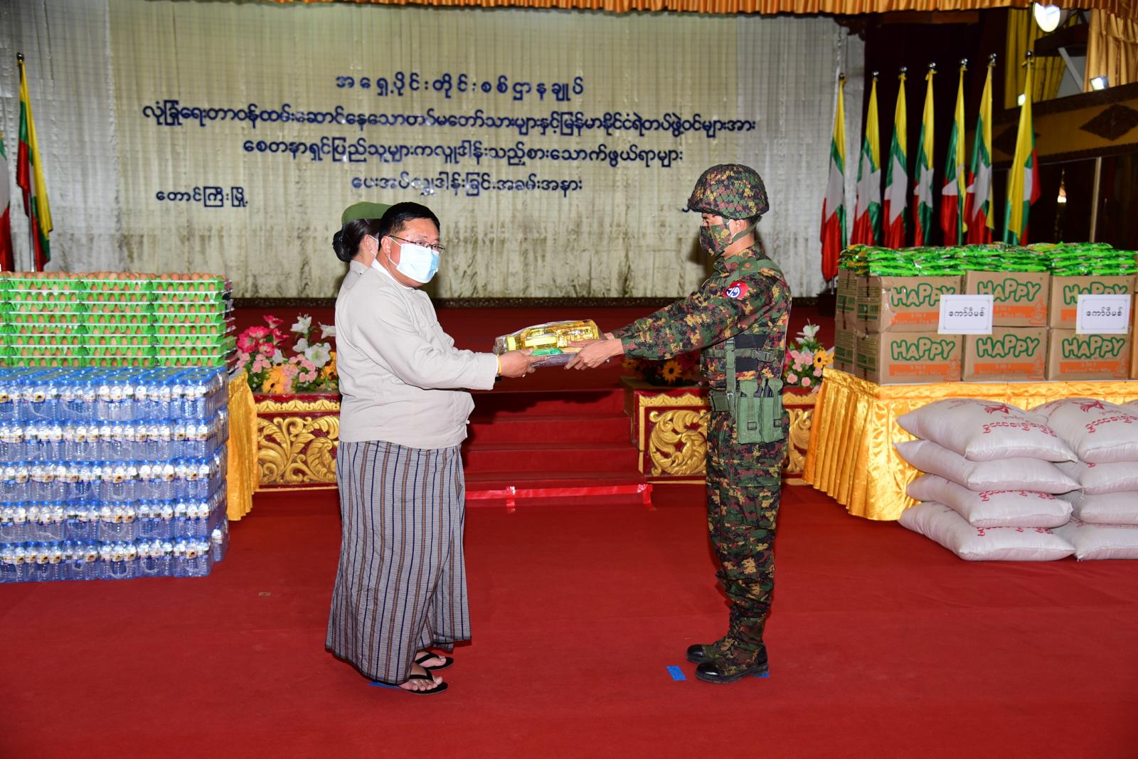 လုံခြုံရေးတာဝန်ထမ်းဆောင်နေသော တပ်မတော်သားများ၊ မြန်မာနိုင်ငံ ရဲတပ်ဖွဲ့ဝင်များ၊ မြန်မာနိုင်ငံ မီးသတ် တပ်ဖွဲ့ဝင်များအား ရှမ်းပြည်နယ် စီမံအုပ်ချုပ်ရေးကောင်စီနှင့် စေတနာရှင်ပြည်သူများက လှူဒါန်းသည့် စားသောက် ဖွယ်ရာများ ပေးအပ် လှူဒါန်းခြင်းကို ဖေဖော်ဝါရီ(၂၅)ရက်နေ့ မွန်းလွဲ(၂)နာရီက တောင်ကြီးမြို့ အရှေ့ပိုင်း တိုင်း စစ်ဌာနချုပ် သံလွင်ခန်းမ၌ ကျင်းပသည်။