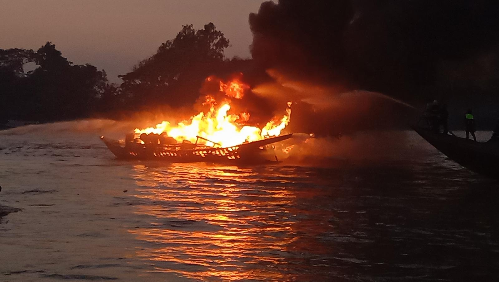 တွံတေး မတ် ၃ ရန်ကုန်တိုင်းဒေသကြီး၊ တွံတေးမြို့နယ်၊ တွံတေးတူးမြောင်းအတွင်းရှိ မူလမန်းကျေးရွာအနီးရှိ ဆိပ်ကမ်း တွင် ဆီတင်စက်လှေဆီပေပါ ရွေရာမှာ ပွတ်တိုက်ပြီး ယမန်နေ့ ညနေ ၅ နာရီ ၄၅ မိနစ်ခန့်က မီးလောင်းမှုဖြစ်ပွားခဲ့ကြောင်း သိရသည်။ မီးလောင်ရာတွင် စက်လှေအတွင်း ဆီပေပါ ၁၅ လုံး အခွံအလုံး(၃၀)ပါရှိပြီး တွံတေးတူးမြောင်းအတိုင်း ရန်ကုန်ဘက်မှ တွံတေးဝဘက်သို့ ရေစီးဖြင့် မျောပါရာ မြို့နယ်မီးသတ်စခန်းမှ မီးသတ်ရေယာဉ် (၁)စီး၊ ပုဂ္ဂလိက မီးသတ်ရေယာဉ်(၁)စီးနှင့် ကုန်ပေါ်မှ တွံတေးမီးသတ်ယာဉ်(၄)စီး၊ ဒလမြို့နယ်မှ(၁)စီး၊ ဆိပ်ကြီးခနောင်တိုမြို့နယ်မှ(၁)စီးတို့ လိုက်လံမီးငြှိမ်းသတ်ရာ တွံတေးတူးမြောင်း ၁၉ မိုင်တွင် မီးလောင်စက်လှေအား သင်္ဘောဖြင့် တိုက်မြုပ်လိုက်ရာ ညနေ ၆ နာရီခွဲတွင် မီးငြိမ်းသွားကြောင်း သိရှိရ သည်။ စက်လှေမီးလောင်သဖြင့် စက်လှေလုပ်သား ၂ ဦး မီးလောင်ဒဏ်ရာရရှိခဲ့ရာ ဧရာဝတီတိုင်းဒေသကြီး၊ မအူပင်မြို့နယ်၊ လက်ကြာကြီးအုပ်စု၊ မိုးမခကျေးရွာနေ မောင်သက်ပိုင်ဦး (ဘ) ဦးကျော်သူရ အသက် (၂၀) နှစ်နှင့် မောင်မင်းခန့်ဦး (နေရပ်မသိ) တို့နှစ်ဦး အခင်းဖြစ်ပွားရာတွင် မီးလောင်ခံရပြီး တွံတေး ဆေးရုံသို့ အတွင်းလူနာအဖြစ် ကုသနေကာ စက်လှေမှာ သံခွံဖြစ်ပြီး အလျားပေ (၄၀)၊ အနံ (၁၂) ပေ ရှိပြီး စက်လှေတန်ဖိုးငွေကျပ် (၁၀) သိန်းနှင့် ဆီပေပါတန်ဖိုး (၁၂) သိန်း စုစုပေါင်းငွေကျပ် (၂၂) သိန်းဖိုး ဆုံးရှုံးသွားပြီး စက်လှေပိုင်ရှင်အား စုံစမ်းဆဲဖြစ်ကြောင်း သိရှိရသည်။ မျိုးလှိုင် (တွံတေး)
