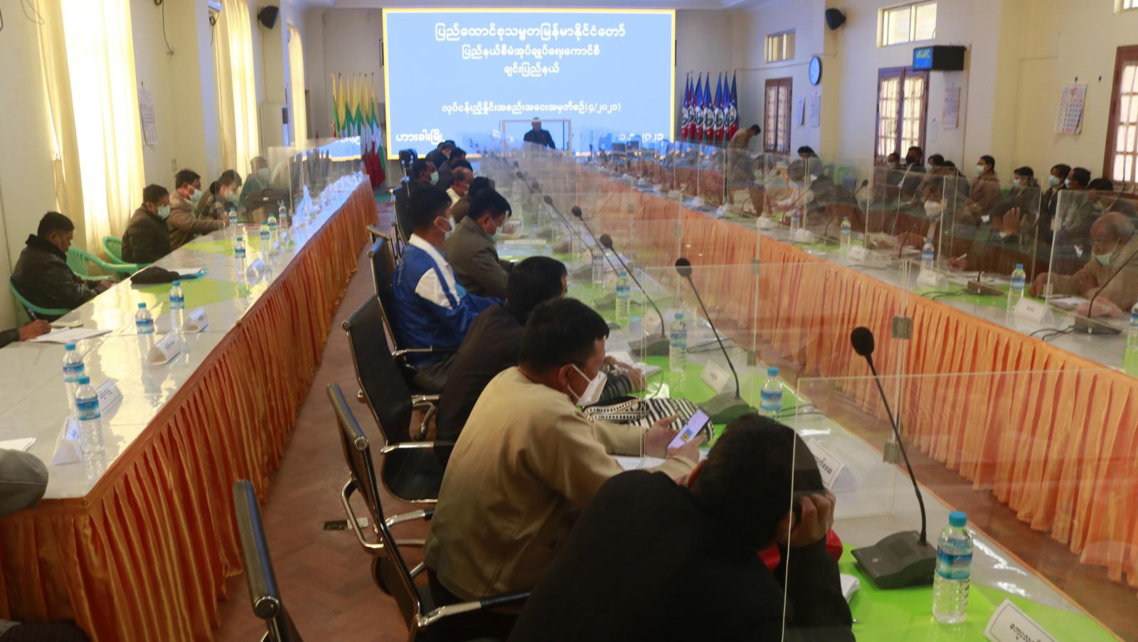 ချင်းပြည်နယ် စီမံအုပ်ချုပ်ရေးကောင်စီနှင့်ပြည်နယ်အဆင့်ဌာနဆိုင်ရာများ၏ လုပ်ငန်းညှိနှိုင်း အစည်းအဝေး (၄/၂၀၂၁)ကို မတ်လ ၃ရက်နံနက် ၁၀ နာရီက ဟားခါးမြို့၊ ချင်းပြည်နယ် စီမံအုပ်ချုပ်ရေး ကောင်စီရုံးအစည်းအဝေးခန်းမ၌ ကျင်းပပြုလုပ်ခဲ့ပါသည်။