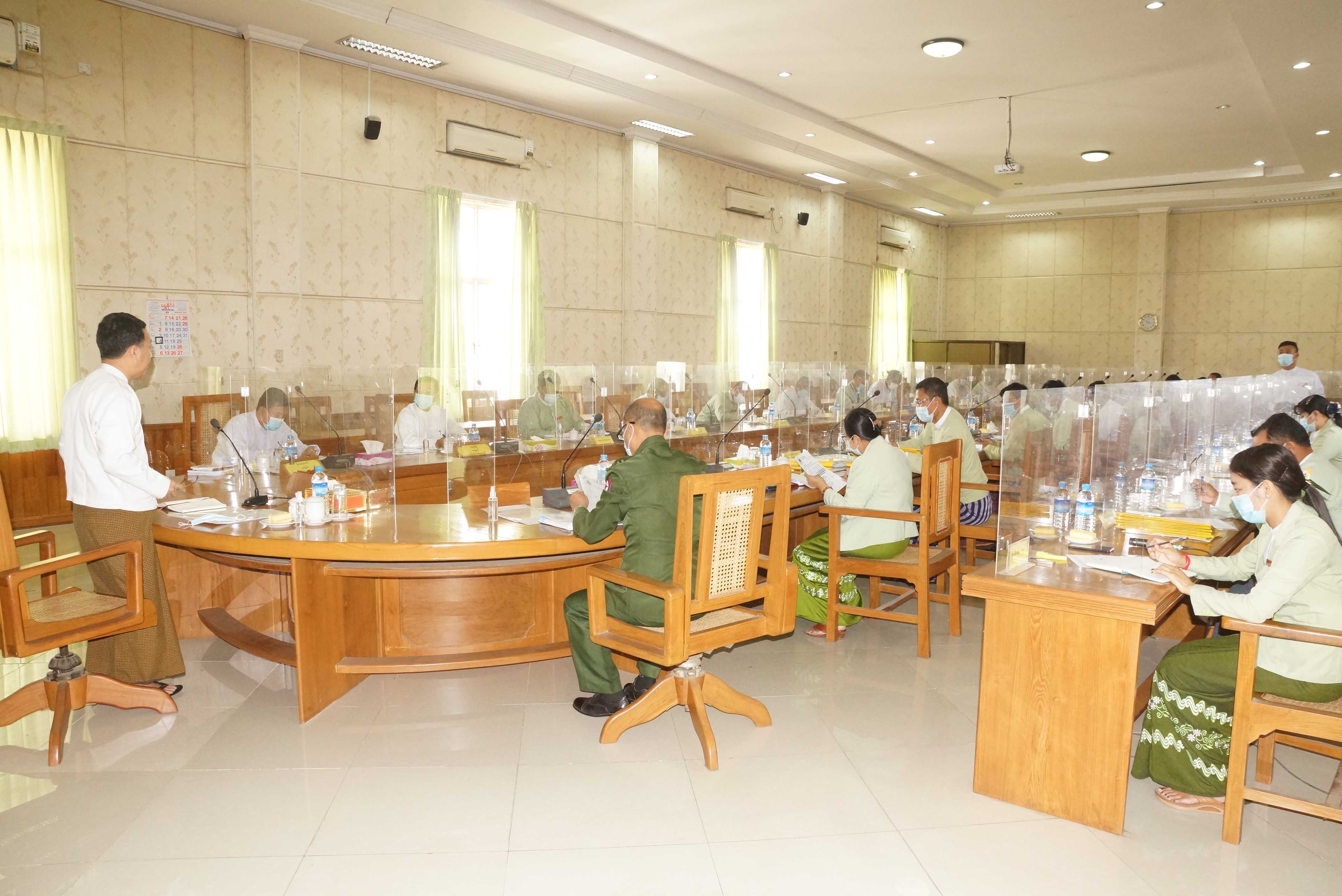 ရှေးဦးစွာ နေပြည်တော်ကောင်စီ ဥက္ကဋ္ဌ ဒေါက်တာမောင်မောင်နိုင်က နိုင်ငံတော်စီမံ အုပ်ချုပ်ရေး ကောင်စီ ဥက္ကဋ္ဌ၏ လမ်းညွှန်ချက်များနှင့် ရှေ့လုပ်ငန်းစဉ်(၅)ရပ်တို့ကို အောင်မြင်အောင် အကောင်အထည်ဖော် ဆောင်ရွက်သွားကြရမည်ဖြစ်ကြောင်း၊ နေပြည်တော်အတွင်း ကိုဗစ်-၁၉ ကာကွယ်ဆေးထိုးနှံရေးလုပ်ငန်းများနှင့်ပတ်သက်ပြီး ပူးပေါင်းပါဝင် ဆောင်ရွက်သွားကြရန်လိုကြောင်း၊ ဒေသဖွံ့ဖြိုးရေး၊ အုပ်ချုပ်ရေးနှင့် လုံခြုံရေးကိစ္စရပ်များကို အထူးအလေးထား ဆောင်ရွက်သွားကြရန်လိုကြောင်း ပြောကြားသည်။