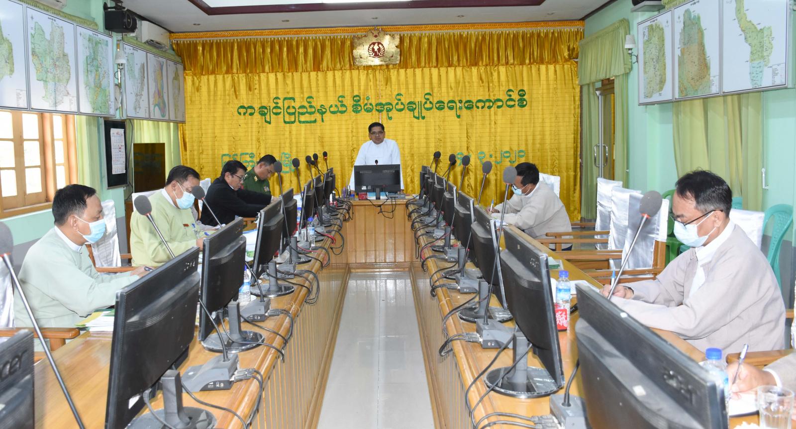 ကချင်ပြည်နယ်အတွင်း မြေလွတ်၊ မြေလပ်နှင့် မြေရိုင်းများ စီမံခန့်ခွဲမှုဆိုင်ရာ လုပ်ငန်းများနှင့် လယ်ယာမြေ စီမံခန့်ခွဲမှုဆိုင်ရာ လုပ်ငန်းများနှင့် ပတ်သက်၍ ရှင်းလင်းဆွေးနွေးခြင်းနှင့် ညှိနှိုင်းဆုံးဖြတ်ခြင်း လုပ်ငန်းများကို ယမန်နေ့ မွန်းလွဲ ၂ နာရီတွင် ကချင်ပြည်နယ် စီမံအုပ်ချုပ်ရေး ကောင်စီရုံး အစည်းအဝေးခန်းမ၌ ကျင်းပပြုလုပ်သည်။