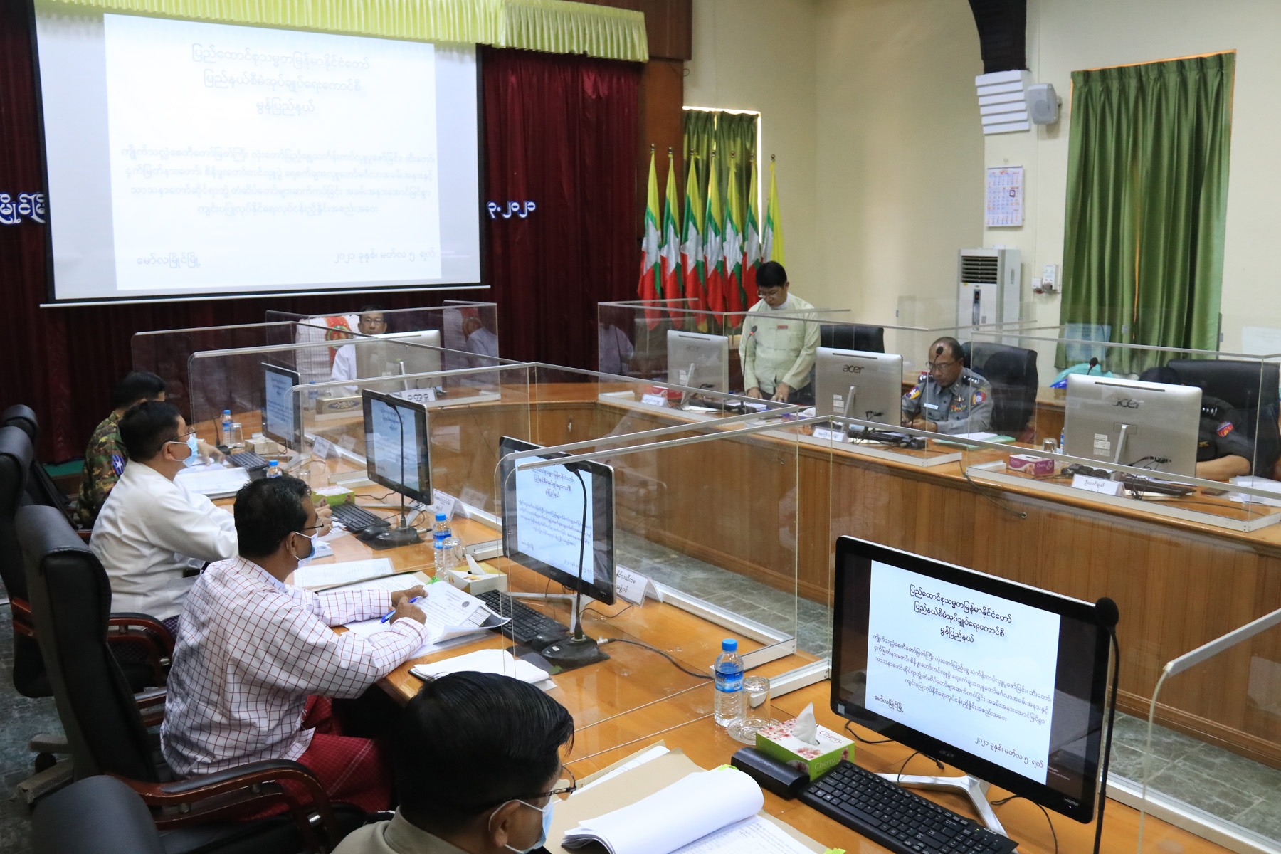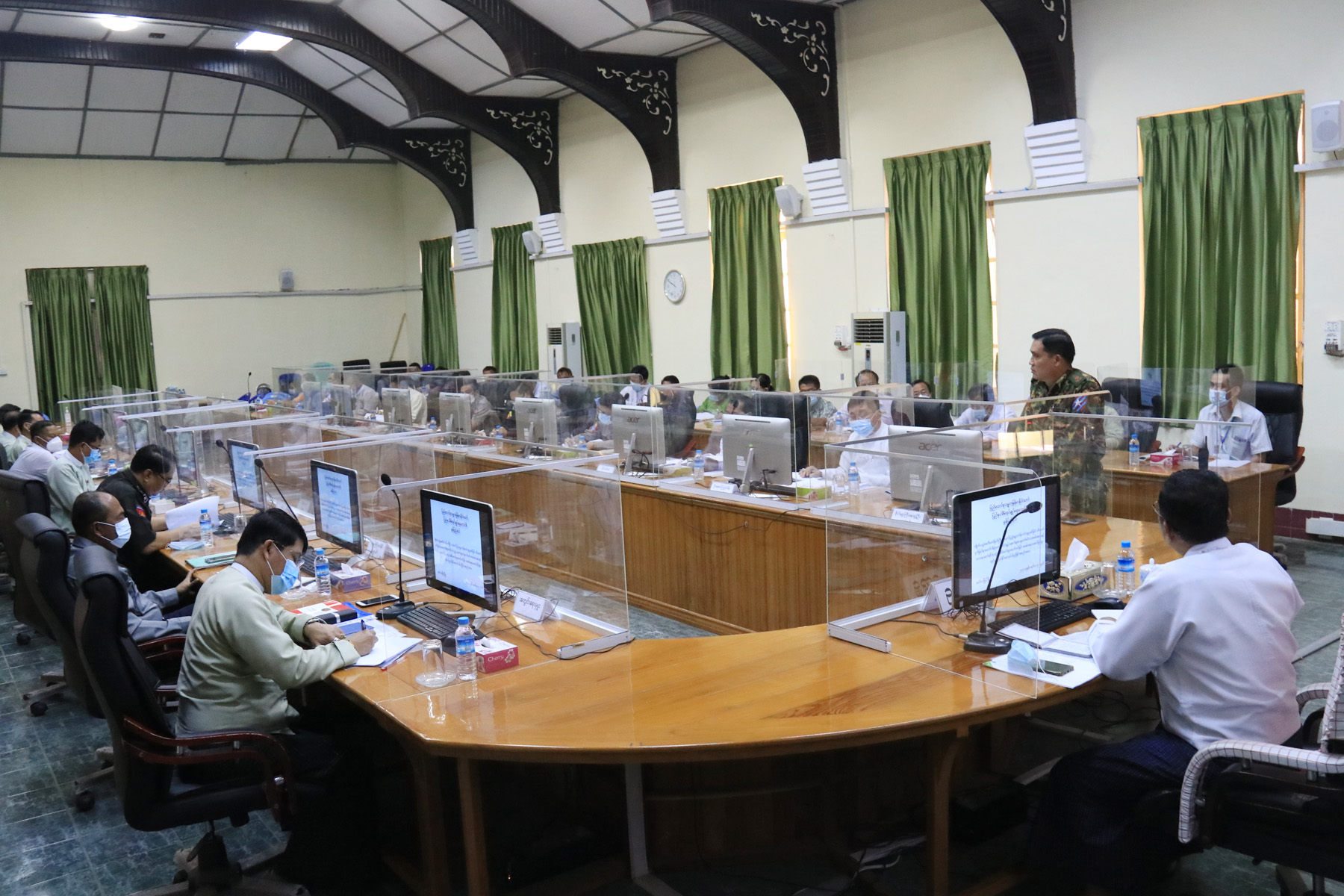 ယင်းနောက် မွန်ပြည်နယ်စီမံအုပ်ချုပ်ရေးကောင်စီဥက္ကဋ္ဌ၊ ကောင်စီဝင်များနှင့် ဌာနဆိုင်ရာများတို့က သာသနာတော်ဆိုင်ရာ ဘွဲ့တံဆိပ်တော်များ ဆက်ကပ်ခြင်း အခမ်းအနားနှင့် (၄၇)နှစ်မြောက် မွန်ပြည်နယ်နေ့ အခမ်းအနား အောင်မြင်စွာ ကျင်းပပြုလုပ်နိုင်ရေးအတွက် ညှိနှိုင်းဆွေးနွေးခဲ့ကြောင်း သိရသည်။