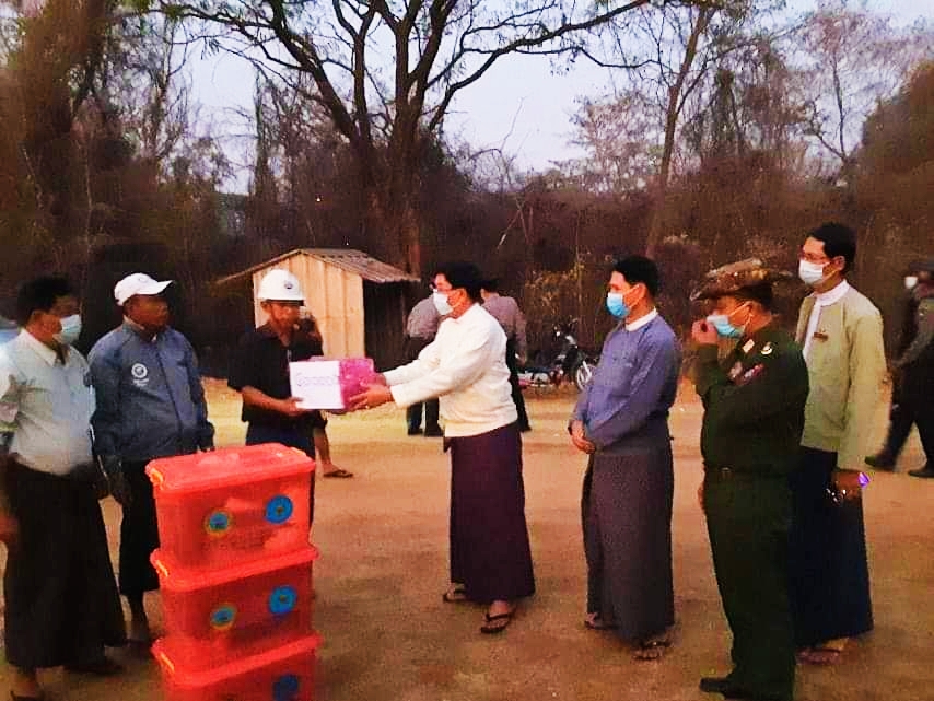 ထိုသို့ ထောက်ပံ့ငွေများပေးအပ်ရာတွင် မကွေးတိုင်းဒေသကြီး စီမံအုပ်ချုပ်ရေးကောင်စီ ဥက္ကဋ္ဌ ဦးတင့်လွင်နှင့်အဖွဲ့ဝင်များက မီးဘေးသင့်အိမ်ထာင်စု (၃) စုအား မကွေးတိုင်းဒေသကြီး စီမံအုပ်ချုပ်ရေးကောင်စီမှ ထောက်ပံ့ငွေကျပ်သိန်း(၃၀)၊ မကွေးတိုင်းဒေသကြီး ဘေးအန္တရာယ်ဆိုင်ရာ စီမံခန့်ခွဲမှုဦးစီးဌာနမှ ထောက်ပံ့ငွေကျပ် ၆ သိန်းနှင့် အိမ်ထောင်စု တစ်စုလျှင် ကယ်ဆယ်ရေးပစ္စည်း (၁၇)မျိုးအား ထောက်ပံ့ပေးခဲ့ကြောင်း သိရှိရသည်။