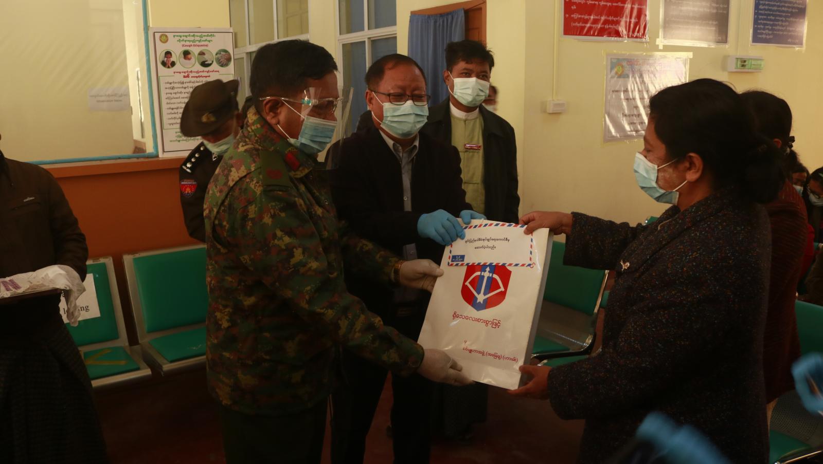 ထို့နောက် ချင်းပြည်နယ်စီမံအုပ်ချုပ်ရေး ကောင်စီဥက္ကဋ္ဌ ဦးငွန်ဆန်းအောင်၊ အနောက်မြောက် တိုင်းစစ်ဌာနချုပ်၊ ဒုတိယတိုင်းမှူး ဗိုလ်မှူးချုပ် မျိုးထွဋ်လှိုင်၊ ချင်းပြည်နယ်စီမံအုပ်ချုပ်ရေး ကောင်စီဝင် ဗိုလ်မှူးကြီးဟန်ဝင်းအောင်၊ ချင်းပြည်နယ် စီမံအုပ်ချုပ်ရေးကောင်စီဝင် ဦးကျော်ငြိမ်း၊ ချင်းပြည်နယ်စီမံအုပ်ချုပ်ရေးကောင်စီအတွင်းရေးမှူး ဦးတိုးဝင်းနှင့် တာဝန်ရှိသူတို့မှ ကျန်းမာရေး ဝန်ထမ်းများအား ထောက်ပံ့ငွေများနှင့် အခြေခံစားသောက်ကုန်များထောက်ပံ့ ပေးအပ်ရာ သက်ဆိုင်ရာ ဝန်ထမ်းများက လက်ခံရယူခဲ့ကြသည်။