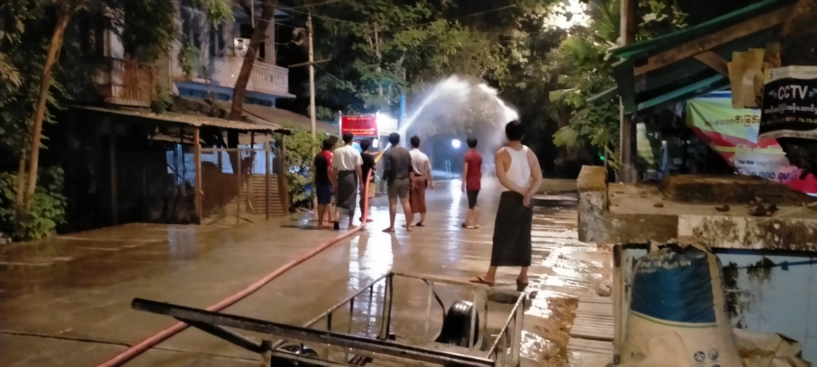 ရန်ကုန်တိုင်းဒေသကြီး၊ သုံးခွမြို့အမှတ် ၄ ရပ်ကွက်၊ အနော်ရထာလမ်းနှင့် မဉ္ဇူလမ်းထောင့် တွင် မီးသတ်အုတ်ရေကန်တစ်ခု တည်ဆောက်လျက်ရှိရာ ပြီးစီးသွားပြီး ရေဖြည့်တင်းကာ လမ်းအတွင်းမှ လူငယ်များ အပေါ့စား မီးသတ်စက်ဖြင့် မီးငြှိမ်းသတ်ခြင်း လက်တွေ့ သရုပ်ပြ လေ့ကျင့်ခဲ့ကြကြောင်း သိရှိရသည်။