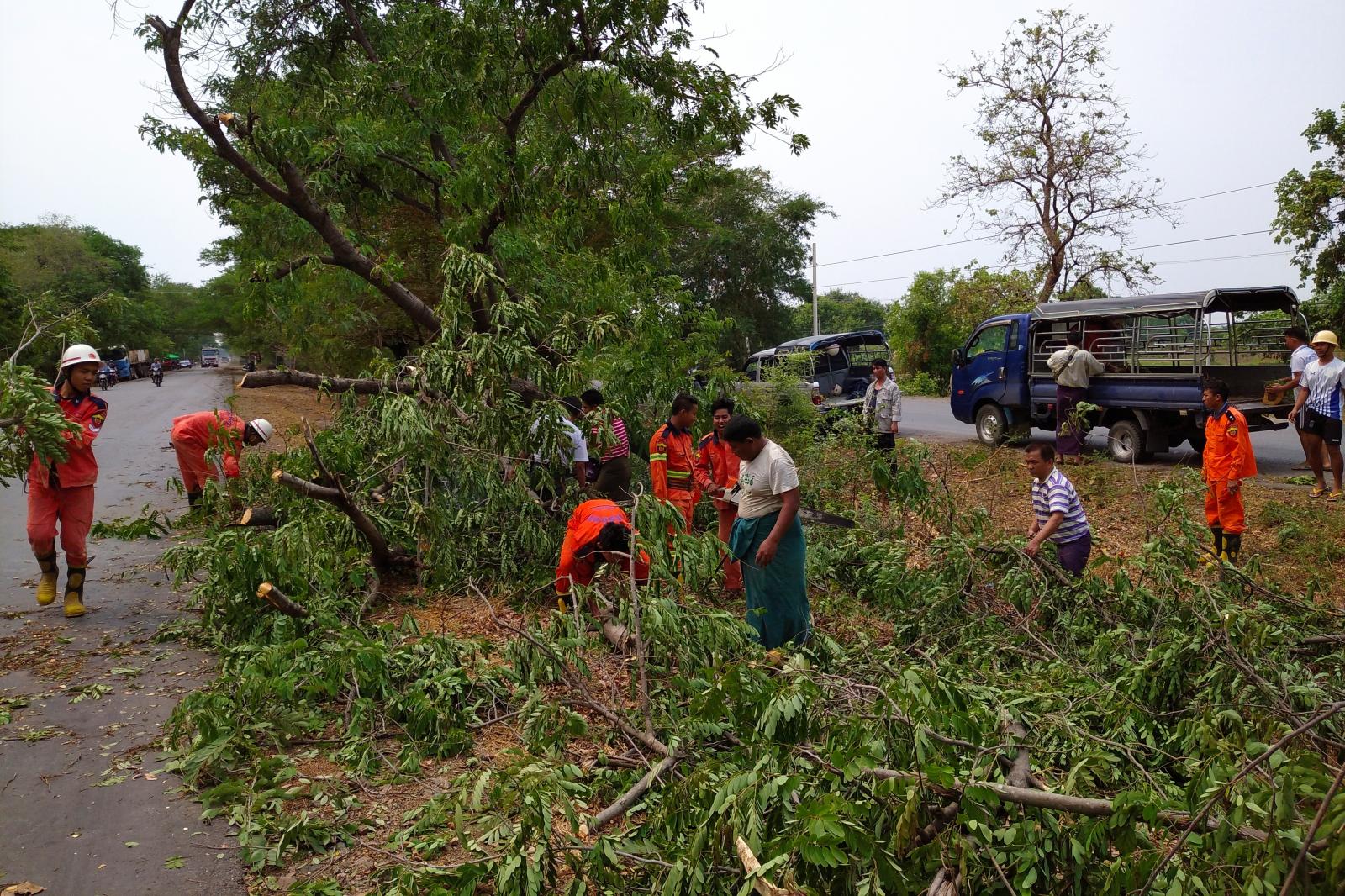 အဆိုပါသစ်ပင်များပြိုလဲရာသို့ မြို့နယ်စီမံအုပ်ချုပ်ရေးအဖွဲ့ဥက္ကဋ္ဌ ဦးကျော်လွင်၊ မြို့နယ် ရဲတပ်မှူး ရဲမှူးသိန်းလွင်နှင့် ရဲတပ်ဖွဲ့ဝင်များ၊ ခရိုင်မီးသတ်ဦးစီးဌာနမှ လက်ထောက်ညွှန်ကြားရေးမှူး ဦးစောလွင်အေးနှင့် မီးသတ်တပ်ဖွဲ့ဝင်များ၊ သော်တာဝင်းကုမ္ပဏီမှ မန္တလေး၊ ကျောက်ဆည် ကားလမ်းတာဝန်ရှိသူများက ယာဉ်ကြောပိတ်ဆို့မှုမရှိစေရေးနှင့် အန္တရာယ်ကင်းရှင်းစေရေးတို့ အတွက် သစ်ပင်ဖြတ်တောက် စက်ကိရိယာများ၊ သစ်ကိုင်းခုတ်ဓားများနှင့်အတူ ကရိန်းများ အသုံးပြုကာ ရှင်းလင်းခြင်းများ ဆောင်ရွက်ပေးခဲ့ပြီး သစ်ပင်ပြိုလဲမှုများကြောင့် လူနှင့်တိရစ္ဆာန်များ ထိခိုက်သေဆုံးမှု မရှိကြောင်း သိရှိရသည်။