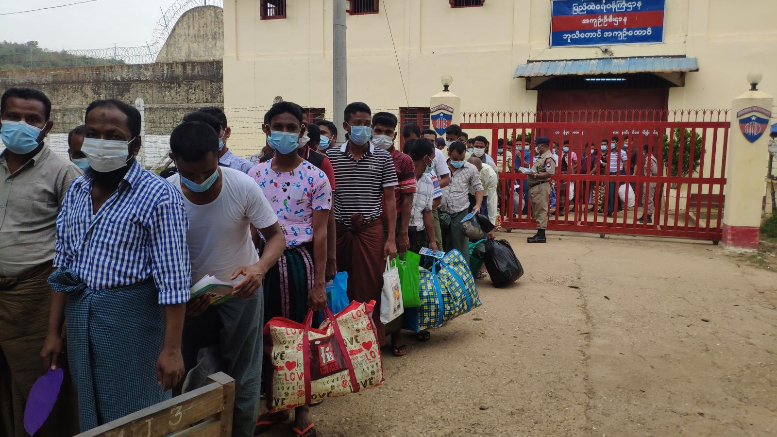 ရှေးဦးစွာ မြို့နယ်စီမံအုပ်ချုပ်ရေး အဖွဲ့ဥက္ကဌ မြို့နယ်အုပ်ချုပ်ရေးမှူး ဦးရွှေလှအောင်နှင့် မြို့နယ်ရဲ တပ်ဖွဲ့မှူး ရဲမှူးဝေဖြိုးဦးတို့က လွတ်မြောက်လာသော အကျဥ်းသား/သူ များအား ဆုံးမသြဝါဒ စကားပြောကြားသည်။