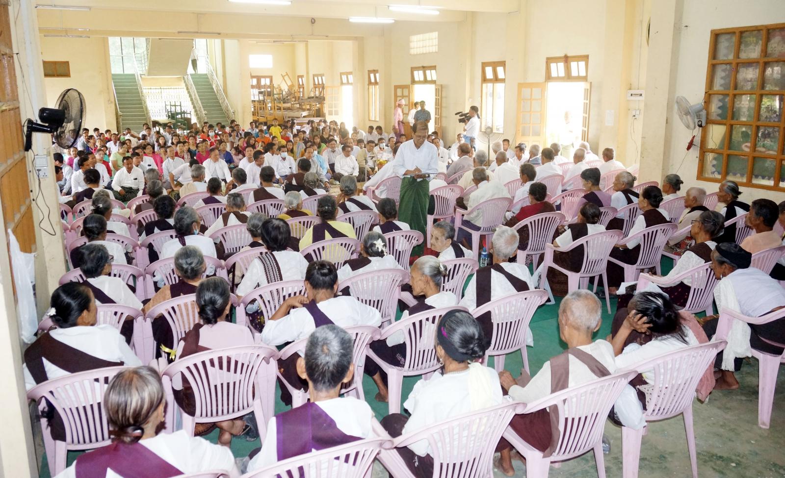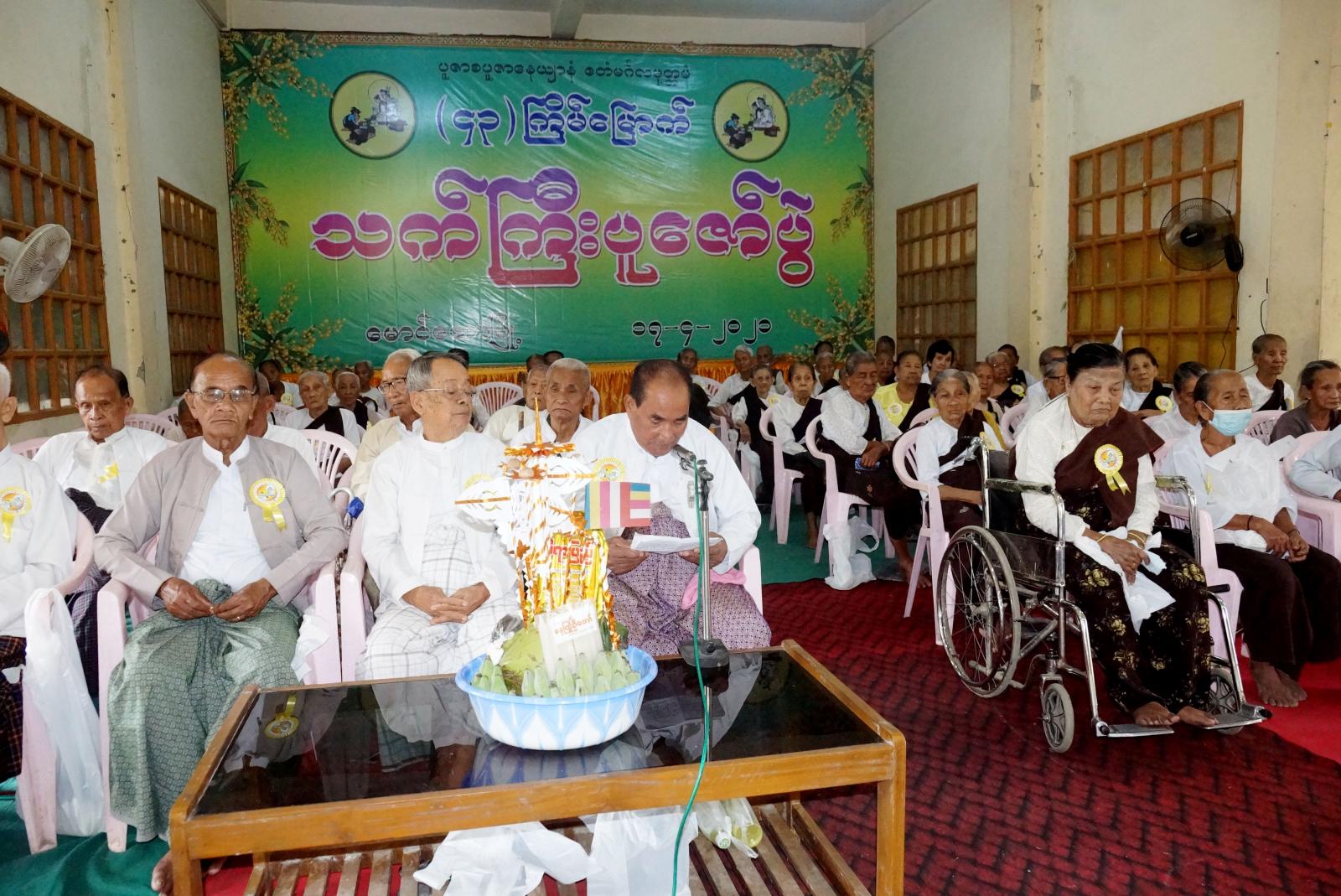 ရှေးဦးစွာ အခမ်းအနားကို ရခိုင်မင်္ဂလာစည်တော်ယွန်း၍ ဖွင့်လှစ်ပြီး ခရိုင်စီမံအုပ်ချုပ်ရေးအဖွဲ့ဉက္ကဌ ဦးစိုး အောင် က ဂါရဝမင်္ဂလာစကားပြောကြားခဲ့သည်။ ထို့နောက်သက်ကြီးပူဇော်ပွဲကျင်းပရေးကော်မတီမှ ဦးမောင်အုန်းကြည်က ဂါဝရစကားနှင့် သက်ကြီးပူဇော်ပွဲကျင်းပခဲ့ပုံ အဆင့်ဆင့်တို့အား ရှင်းလင်းပြောကြား ပြီး သက်ကြီး ဘိုးဘွား များ အား ကန့်တောချိုးရွက်ဆို၍ လက်အုပ်ချီ ကန့်တော့ခဲ့ကြရာ သက်ကြီး ဘိုးဘွားများကိုယ်စား အဘိုးတစ်ဦးမှ ကျေးဇူး တင် စ ကား ပြောကြားကာ ဆုတောင်းမေတ္တာပို့သ ပေးခဲ့ကြသည်။ ဆက်လက်၍ သက်ကြီးဘိုးဘွားများအား လှူဖွယ် ဝတ္တူ များ ဖြင့် ပူဇော်ကန့်တော့ခဲ့ကြပြီး မြို့ပေါ်ရပ်ကွက်များမှ ကောက်ခံရရှိငွေ (၅၂၄၄၈၅၀) ကျပ် နှင့် ခရိုင်/မြို့နယ်အဆင့် ဌာန ဆိုင်ရာများမှ လှူဒါန်းငွေ (၂၈၅၉၀၀၀) စုစုပေါင်း (၈၁၀၃၈၅၀)ကျပ် ဖြစ်ကြောင်း နှင့် သက်ကြီး ပူဇော်ပွဲ ကျင်းပ ရေး ဦးစီးကော်မတီမှ အဘိုး၊ အဘွားတစ်ဦးလျှင် (၇၀၀၀၀) နှုန်းဖြင့် ပူဇော် ကန့် တော့ခဲ့ကြသည်။ ပူဇော်ပွဲသို့ အပူဇော်ခံ အသက်(၈၀)နှစ်အထက် အဘိုး(၃၃)ဦး ၊အဘွား(၈၅)ဦး ၊ပေါင်း(၁၁၈)ဦး၊ ခရိုင် စီမံ အုပ်ချုပ်ရေး အဖွဲ့ဉက္ကဌ ဦးစိုးအောင် ၊ မြို့နယ်စီမံအုပ်ချုပ်ရေး အဖွဲ့ဥက္ကဌ ဦးအောင်ရဲ နှင့် တာဝန်ရှိသူများ ခရိုင်/ မြို့နယ်အဆင့် ဌာနဆိုင်ရာများ၊ မြို့သူ/သားများ စုစုပေါင်း(၃၀၀)ဦးခန့် တက်ရောက်ခဲ့ကြသည်။