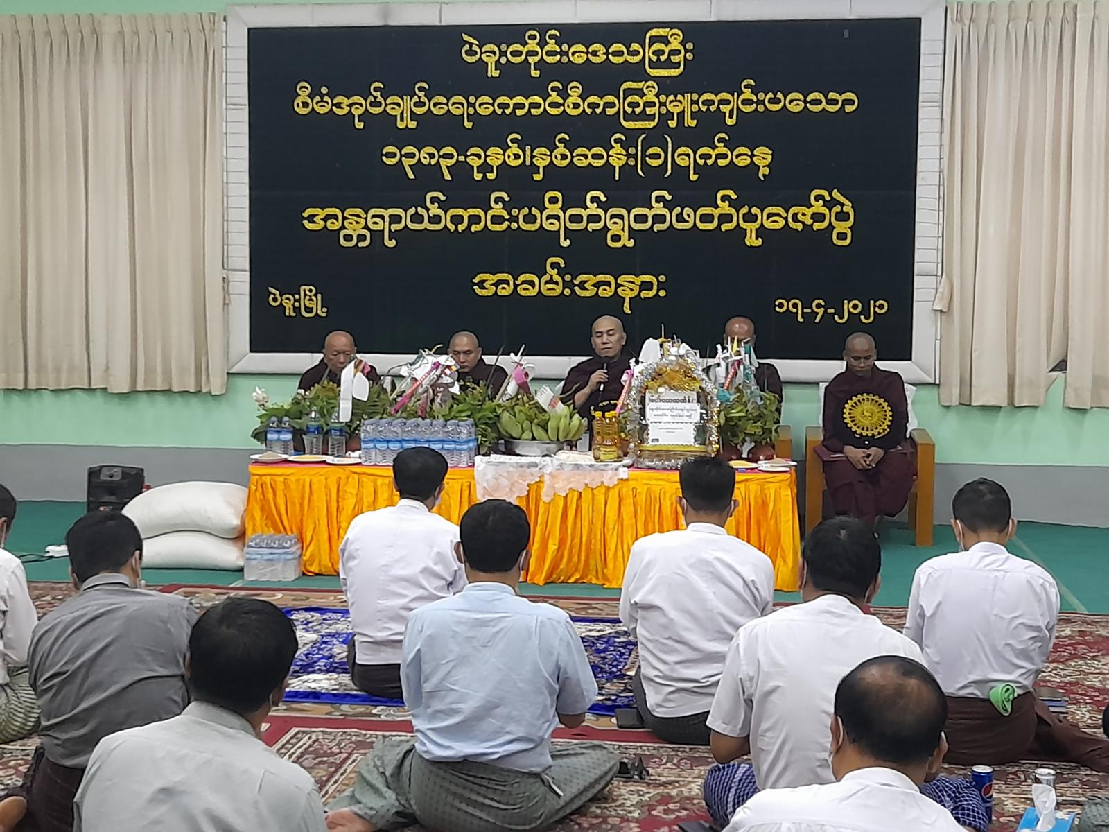 ပဲခူးတိုင်းဒေသကြီးစီမံအုပ်ချုပ်ရေးကောင်စီဥက္ကဋ္ဌ ဦးမျိုးဆွေဝင်း ဦးဆောင်၍ ပဲခူးမြို့၌ အန္တရာယ်ကင်း ပရိတ်တရားတော်နာ အခမ်းအနားအား ယမန်နေ့ မြန်မာနှစ်ဆန်း (၁)ရက်နေ့၊ ညနေ ၅ နာရီက ပဲခူးတိုင်းဒေသကြီးစီမံအုပ်ချုပ်ရေး ကောင်စီရုံး၌ ကျင်းပပြုလုပ်ခဲ့သည်။