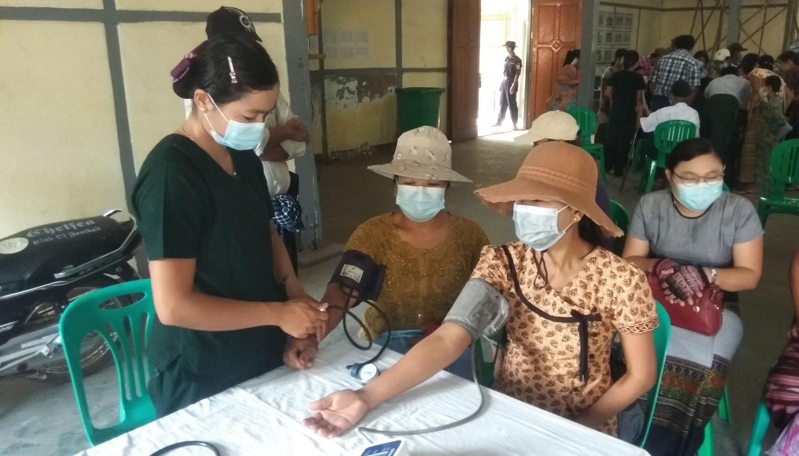မြို့နယ်အတွင်း ကိုဗစ်-၁၉ ရောဂါကြိုတင်ကာကွယ်ရန်အတွက် မြို့နယ်စီမံအုပ်ချုပ်ရေးအဖွဲ့၏ ဦးဆောင်မှု ဖြင့် မတ်လ ၁၂ ရက်နေ့ က ဌာနဆိုင်ရာဝန်ထမ်းများ၊ အသက် ၆၀ နှင့်အထက် သက်ကြီးရွယ်အိုများ၊ အသက် ၁၈ နှစ်အထက် ဒေသခံ ပြည်သူ များအား ပထမအကြိမ် COVISHIELD ကာကွယ်ဆေး အလုံးရေ (၃၀၀)ကို ထိုးနှံပေးခဲ့ပြီးဖြစ်သည်။