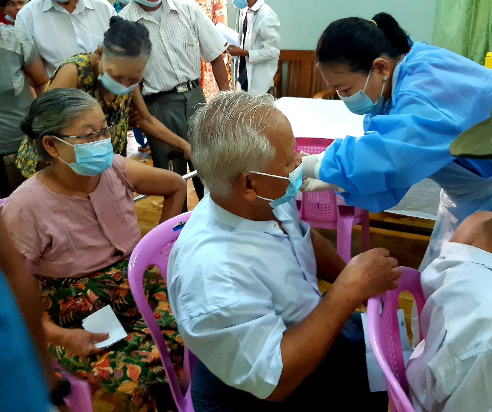 ကိုဗစ်- ၁၉ ရောဂါ ကာကွယ်ဆေး ဒုတိယအကြိမ် ထိုးနှံပေးရာသို့ ရန်ကုန်တောင်ပိုင်းခရိုင် (သန်လျင်) အထွေထွေရောဂါကုဆေးရုံ ဆေးရုံအုပ်ကြီး ဒေါက်တာ ချိုချိုလွင်နှင့် တာဝန်ရှိသူများက အနီးကပ် ကြီးကြပ်ကာ ကိုဗစ်- ၁၉ ရောဂါကာကွယ်ဆေး လာရောက်ထိုးနှံကြသူများ အဆင်ပြေချောမွေ့ စေရန်အတွက် ကျန်းမာရေးဝန်ထမ်းများက ကူညီဆောင်ရွက်ပေးလျှက်ရှိကြောင်း နှင့် ကာကွယ်ဆေးများထိုးနှံပေးလျက်ရှိကြောင်း သိရသည်။