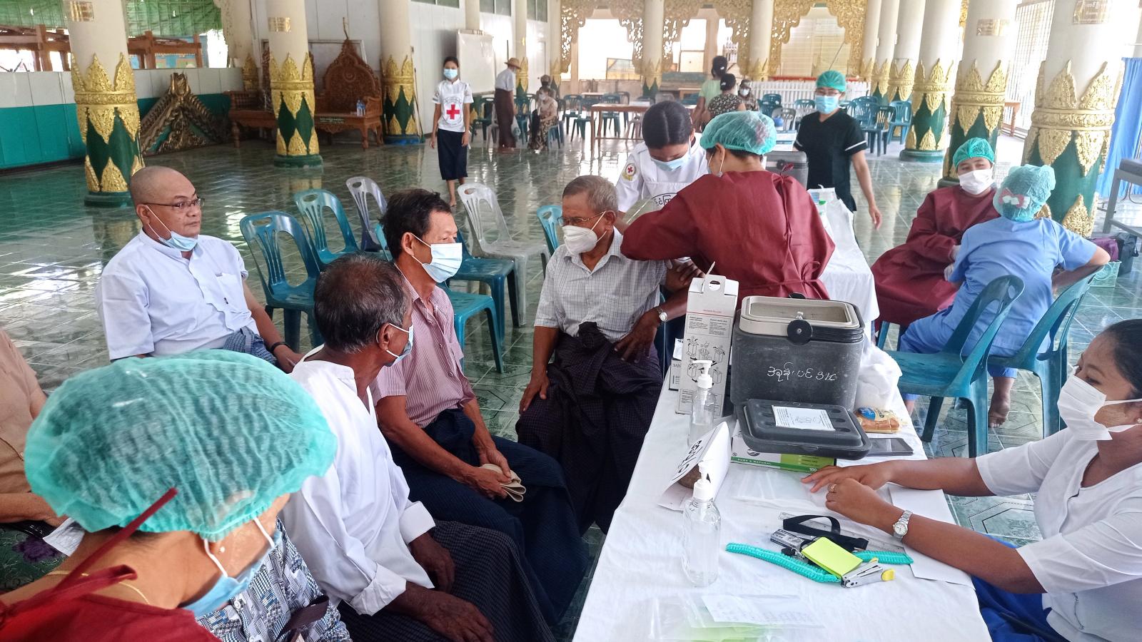 အဆိုပါ ကိုဗစ်-၁၉ ရောဂါကာကွယ်ဆေး ထိုးနှံရာတွင် မြို့နယ်ကျန်းမာရေးဦးစီးဌာနမှူး ဒေါက်တာခင်မောင်ရင် ဦးဆောင်သော ကျန်းမာရေး ၀န်ထမ်းများက ကာကွယ်ဆေး လာရောက်ထိုးနှံကြသည့် သံဃာတော်များ၊ အသက် ၆၅ နှစ်အထက် သက်ကြီးဘိုးဘွားများ၊ ဌာနဆိုင်ရာ ၀န်ထမ်းများနှင့် ပြည်သူများကို ကိုယ်အပူချိန်တိုင်းတာပေးခြင်း၊ သွေးပေါင်ချိန်တိုင်းတာပေးခြင်းများ ဆောင်ရွက်ပေးပြီးနောက် ပုံမှန် အနေအထားရောက်မှသာ စနစ်တကျ ကာကွယ် ဆေးထိုးနှံပေးပြီး ဆေးထိုးနှံသူများကို မိနစ် ၃၀ ခန့် အနားယူစေကာ ကျန်းမာရေးစောင့်ရှောက်မှုများ ဆောင်ရွက်ပေးလျက်ရှိကြောင်း သိရသည်။