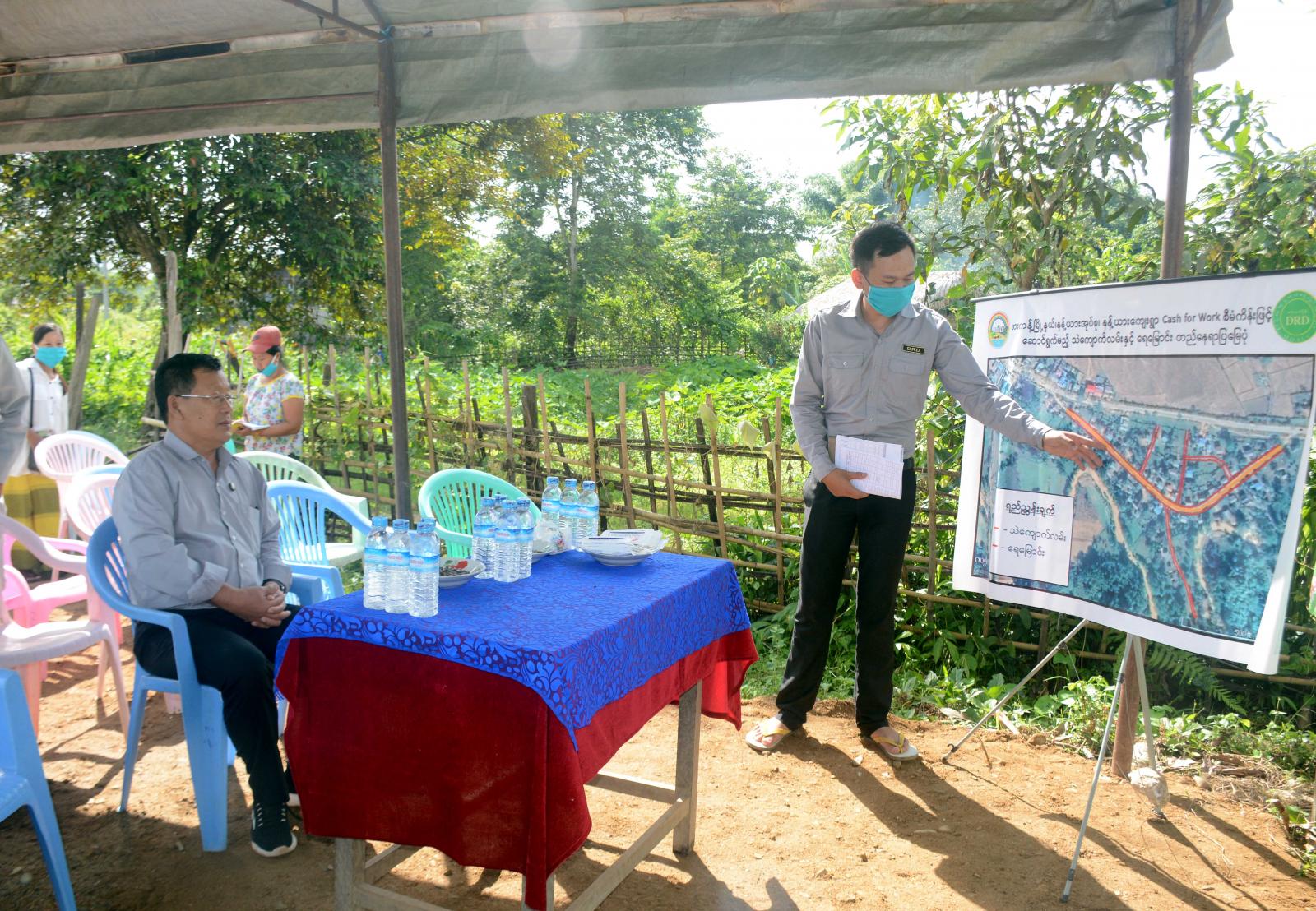 ထို့သို့ဆောင်ရွက်ရာတွင် နိုင်ငံတော်မှချမှတ်ထားသော ကိုဗစ်-၁၉ ကာလအတွင်း ဝင်ငွေနည်း ကျေးလက်နေပြည်သူများအတွက် အလုပ်အကိုင်အခွင့်အလမ်းများ ဖော်ဆောင်ပေးခြင်းဖြင့် ချက်ချင်း ဝင်ငွေရရှိစေရန်နှင့် ကျေးရွာအခြေခံအဆောက်အအုံများ ဖွံ့ဖြိုးတိုးတက်စေရန်ရည်ရွယ်ပြီး စိုက်ပျိုးရေး၊ မွေးမြူရေးနှင့် ဆည်မြောင်းဝန်ကြီးဌာန၊ ကျေးလက်ဒေသ ဖွံ့ဖြိုးတိုးတက်ရေး ဦးစီးဌာနမှ ဆောင်ရွက်နေသော Cash For Work စီမံကိန်းကျေးရွာဖြစ်သည့် နန့်ယားကျေးရွာ၌ စီမံကိန်း ထောက်ပံ့ငွေကျပ် သိန်း ၁၀၀ ဖြင့် ရပ်ကွက်(၃)ရှိ ခင်တောင်လမ်းမကြီးသည် အရှည်(၁၆၅၀)ပေ၊ အကျယ်(၁၅)ပေ၊ အမြင့်(၆)လက်မရှိ လမ်းအားပြုပြင်ခြင်းနှင့် လမ်းဘေးဝဲ/ယာ ရေမြောင်းများတူးဖော်ခြင်း လုပ်ငန်းများကို ကျေးရွာလူထု လုပ်အားဖြင့် ဆောင်ရွက်နေမှု အခြေအနေများအား ပြည်နယ်အစိုးရအဖွဲ့ဝင် စိုက်ပျိုးရေး၊ မွေးမြူရေးနှင့် ဆည်မြောင်းဝန်ကြီးဌာန ဝန်ကြီး ဦးကျော်ကျော်ဝင်း၊ ပြည်နယ်အဆင့် သက်ဆိုင်ရာ တာဝန်ရှိသူများနှင့် ကာမိုင်းမြို့ဌာနဆိုင်ရာ တာဝန်ရှိသူများက ကွင်းဆင်းကြည့်ရှုစစ်ဆေးခဲ့ရာ လိုအပ်သည်များကို ပေါင်းစပ်ညှိနှိုင်း ဆောင်ရွက် ပေးခဲ့ကြောင်း သိရသည်။
