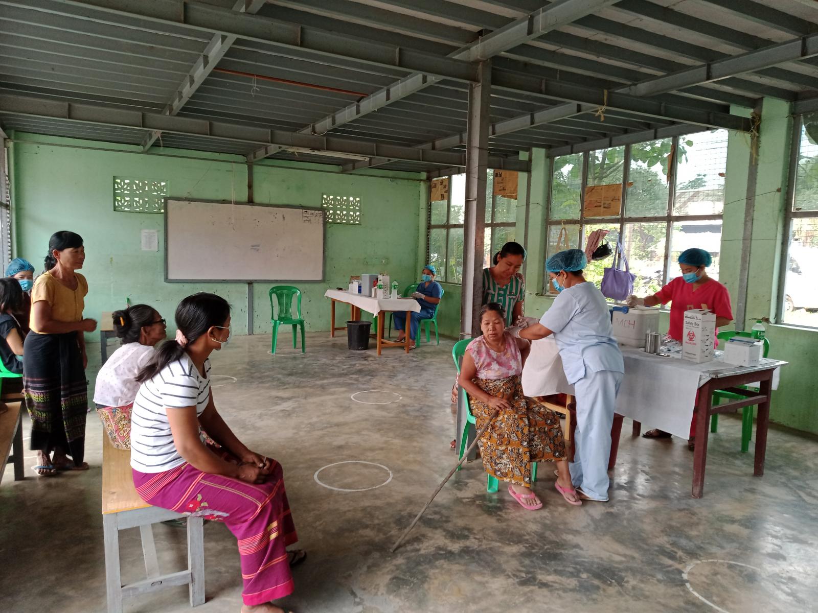 ထိုသို့ အသက်(၁၈)နှစ်အထက် ဒေသခံပြည်သူများအား ဒုတိယအကြိမ် ကိုဗစ်-၁၉ရောဂါကာကွယ် ဆေးထိုးနှံပေးခြင်းဆောင်ရွက်ရာတွင် မြို့နယ်ပြည်သူ့ကျန်းမာရေးဦးစီးဌာနမှ လက်ထောက်ကျန်းမာရေးမှူး ဒေါ်သက်သက်ရည် ဦးဆောင်၍ ကျန်းမားရေးဝန်ထမ်းများက ဒုတိယအကြိမ် ကိုဗစ်-၁၉ရောဂါ ကာကွယ်ဆေးထိုးနှံမည့် အသက်(၁၈)နှစ်အထက် ဒေသခံပြည်သူများအား ကိုယ်အပူချိန် တိုင်းတာပေးခြင်း၊ သွေးပေါင်ချိန် တိုင်းပေးခြင်းတို့ကို ဆောင်ရွက်ပေးခဲ့ပြီးနောက် ကိုဗစ်-၁၉ရောဂါ ကာကွယ်ဆေးများ ထိုးနှံပေးခဲ့ကြောင်း သိရသည်။