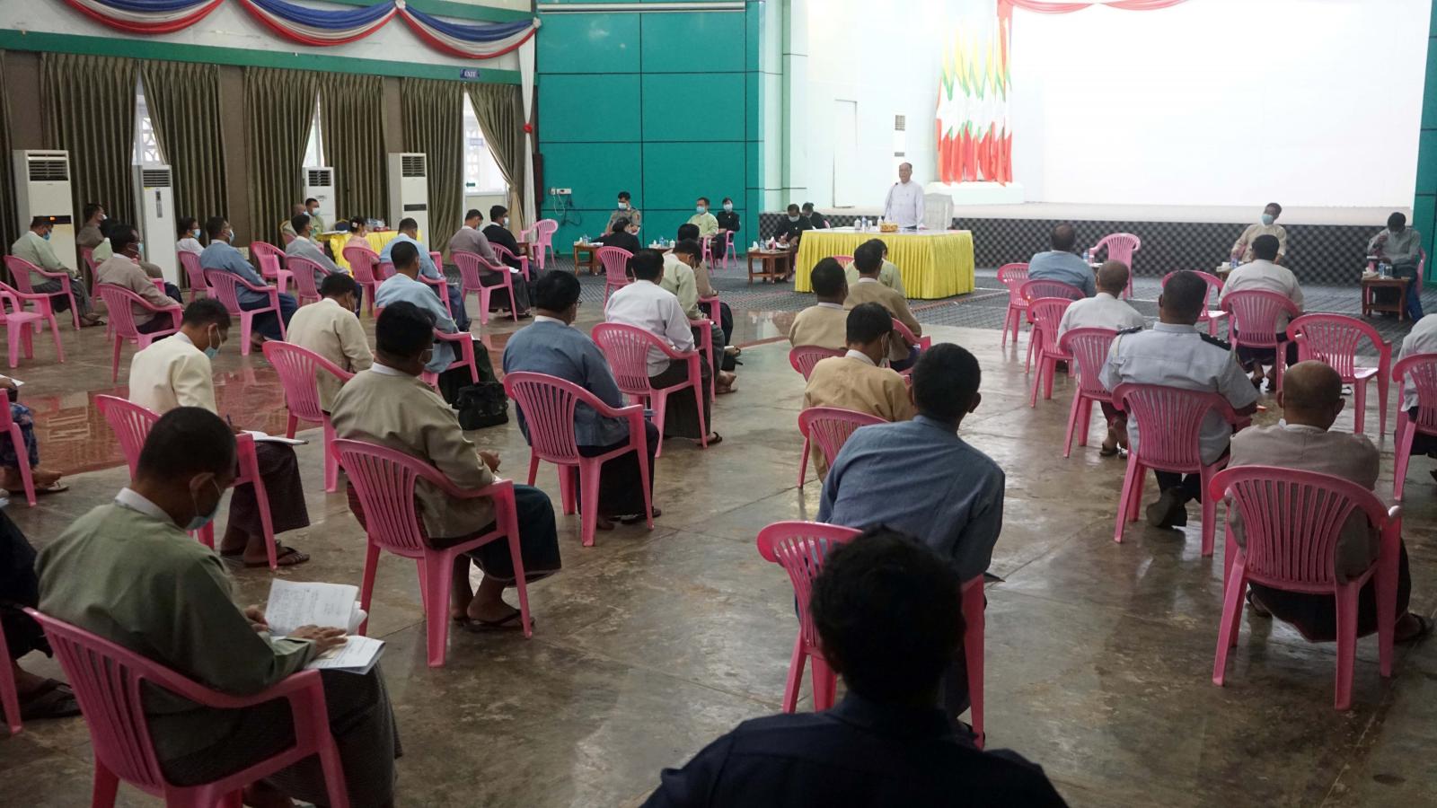 ကရင်ပြည်နယ် စီမံအုပ်ချုပ်ရေးကောင်စီနှင့် ပြည်နယ်အဆင့်ဌာနဆိုင်ရာများ၏ လုပ်ငန်းညှိနှိုင်း အစည်းအဝေး(၇/၂၀၂၁)ကို ယနေ့ နံနက် ၉ နာရီခွဲခန့်က ဘားအံမြို့ ဇွဲကပင်ခန်းမ၌ ကျင်းပခဲ့သည်။