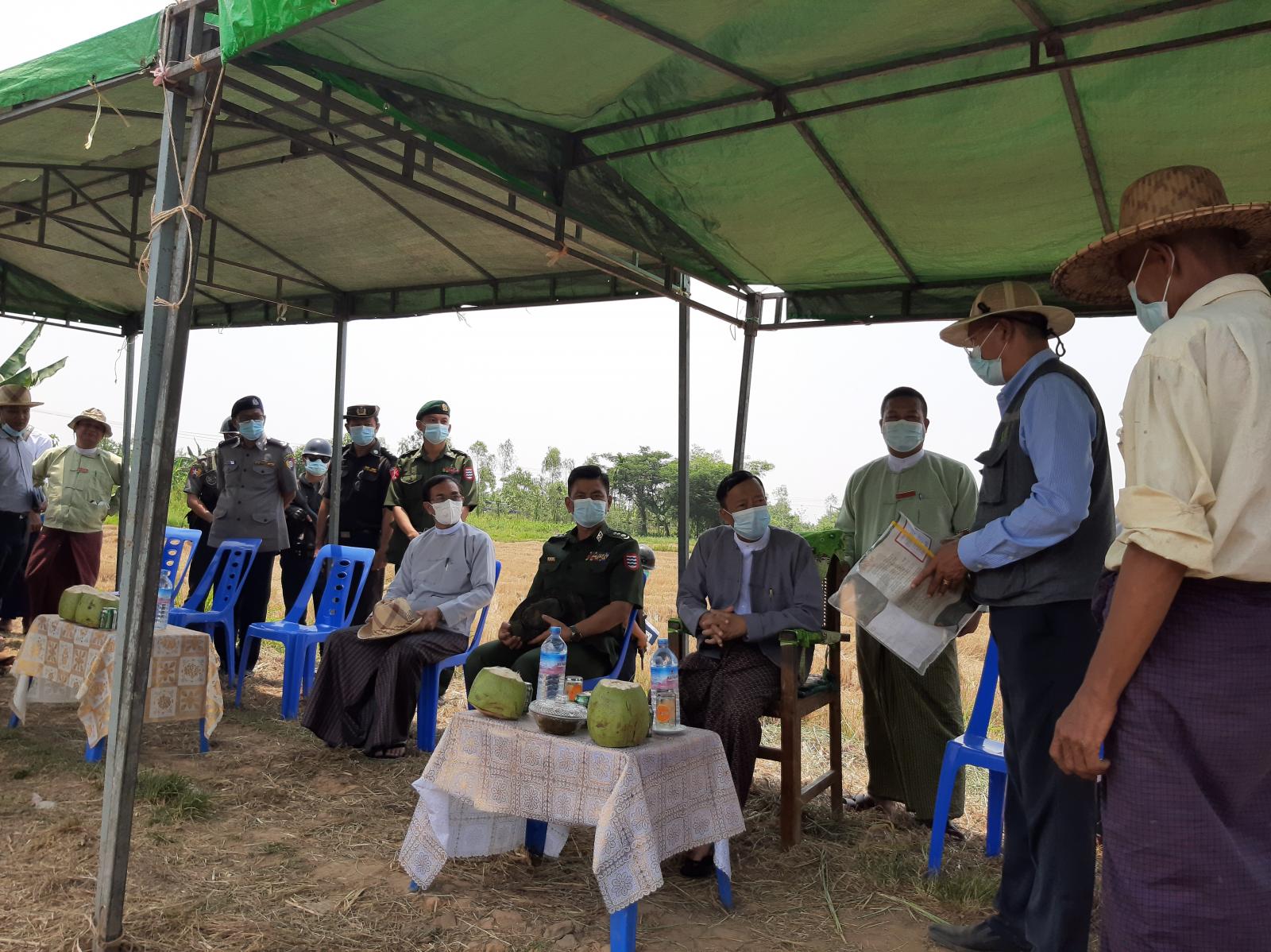 ဧရာဝတီတိုင်းဒေသကြီး စီမံအုပ်ချုပ်ရေးကောင်စီဥက္ကဋ္ဌ ဦးရဲမြင့်၊ တိုင်းဒေသကြီး စီမံအုပ်ချုပ်ရေးကောင်စီအဖွဲ့ဝင် ဗိုလ်မှူးကြီး ကျော်စွာလှိုင်နှင့် အဖွဲ့ဝင်များသည် ယမန်နေ့ မွန်းလွဲ ၁၂ နာရီ ၃၀ မိနစ် အချိန်က မော်လမြိုင်ကျွန်းမြို့နယ်သို့ ရောက်ရှိပြီး ကျွဲခြံချောင်းဖျားကျေးရွာနေ တောင်သူ ဦးတင်သိန်း၏ လယ်မြေဧက ၈ ဧကတွင် မဖောက်ထုံး ထည့်သွင်းခြင်းနှင့် ပိုက်ဆံလျှော်ကြဲပက်ခြင်း လုပ်ငန်းအား ဝင်ရောက်ကြည့်ရှု အားပေးကြသည်။