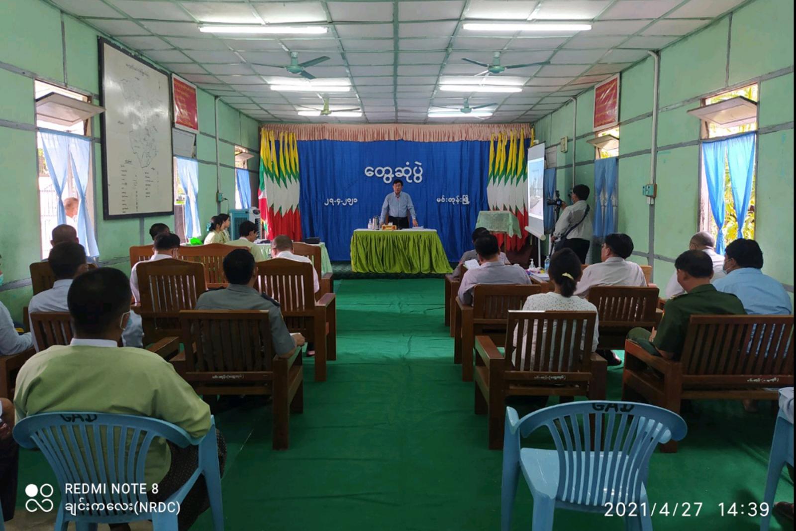 ဆက်လက်၍ တိုင်းဒေသကြီးစီမံအုပ်ချုပ်ရေး အဖွဲ့ဝင်(၁) ဗိုလ်မှူးကြီးမင်းဦး၊ အဖွဲ့ဝင်(၅) ရဲမှူးကြီးလှိုင်တင့်က နယ်မြေလုံခြုံရေးနှင့် တရားဉပဒေစိုးမိုးရေးဆိုင်ရာ ကိစ္စရပ်များ၊ လူမှုစီးပွား ဘဝ ဖွံ့ဖြိုးရေးဆိုင်ရာများနှင့်ပတ်သက်၍ ဆွေးနွေးပြောကြားခဲ့ပြီး မင်းတုန်းမြို့နယ်စီမံ အုပ်ချုပ်ရေးဉက္ကဋ္ဌ ဦးကျော်သူစိုးက မင်းတုန်းမြို့နယ်၏ အုပ်ချုပ်ရေး၊ စီးပွားရေး၊ လူမှုရေးနှင့် ဒေသဆိုင်ရာ အချက်အလက်များအား ရှင်းလင်းတင်ပြရာ မကွေးတိုင်းဒေသကြီး စီမံအုပ်ချုပ်ရေးကောင်စီဉက္ကဋ္ဌ ရှင်းလင်းတင်ပြမှုများအပေါ် လိုအပ်သည်များ လမ်းညွှန်မှာကြား ခဲ့ကြောင်း သိရသည်။